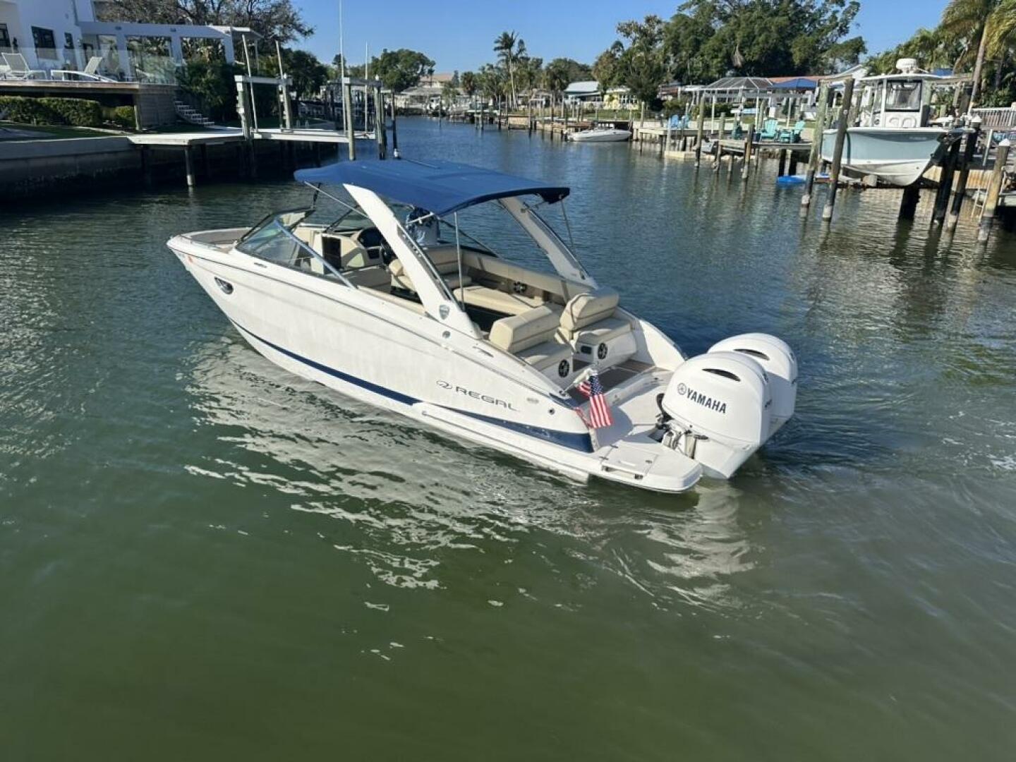 Introducing the stunning 2019 Regal 29 OBX Open Bow Ski/Wake Board vessel that combines elegance with performance. With an overall length of 29 feet, this boat features a sleek modified vee hull crafted from durable fiberglass, ensuring a smooth and stable ride on the water. Powered by twin 297hr white Yamaha 200 hp engines w 300 hour svc 6/25, this boat offers impressive acceleration and responsiveness. The Bow Thruster & twin outboard direct drive system enhance maneuverability, making it perfect for both leisurely cruises and thrilling water sports. The Regal 29 OBX is designed for comfort and enjoyment, featuring ample space for relaxation and entertainment with full SeaDec flooring. This boat has it all including an electric windlass & marine head. Its thoughtful design ensures that every outing is a memorable experience, whether you're hosting friends or enjoying a day on the water with family. With a new canvass Bimini & complete mooring cover she's ready for her next owners. Experience the perfect blend of style and functionality with this exceptional bowrider.