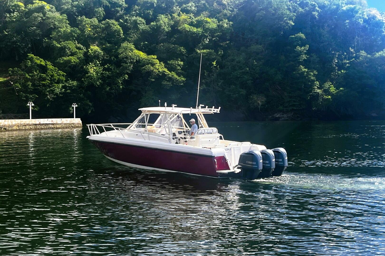 Repowered in 2019 with triple Yamaha 300 HP 4-strokes, she offers the ideal mix of speed, reliability, and fuel economy. All engines are dealer-maintained with service completed June 2025 and current hours of 436 / 436 / 444.