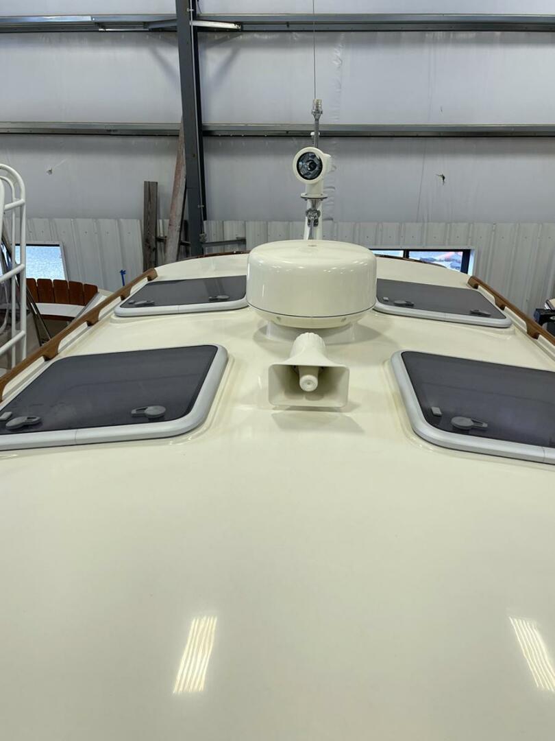 - Hinckley pilothouse mast with spotlight and radome painted to match deck