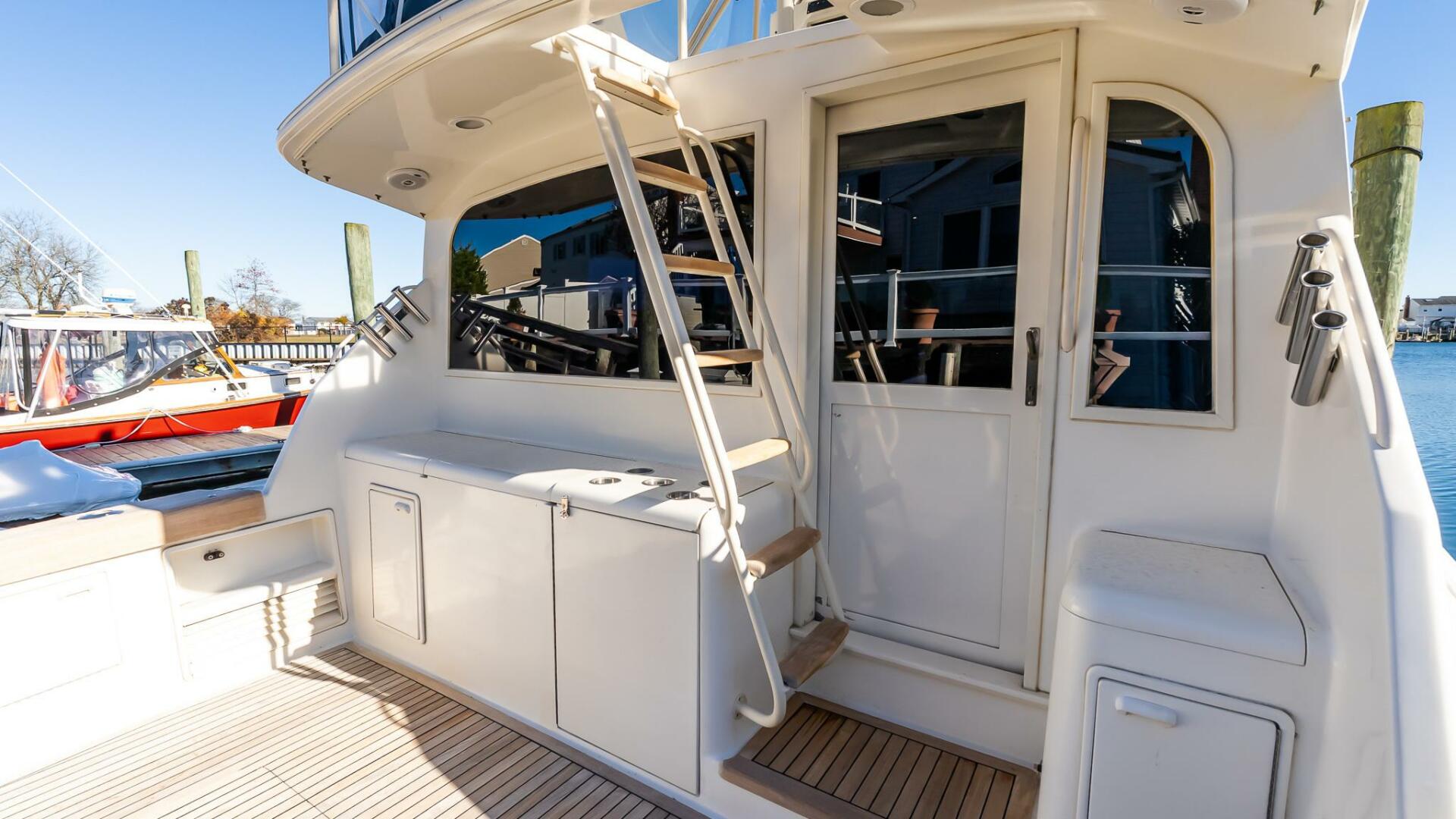 "Falcon" is an Ocean 48 Super Sport that has benefitted from a series of desirable upgrades that keep her looking her best, including many in 2017 such as a beautiful blue painted hull, Amtico flooring, carpeting, teak decks, and landing covering board. Enjoy Southco hardcover and shocks on all hatches, along with powder coated bridge rails and ladder.