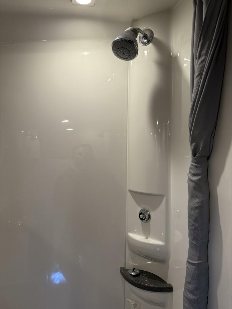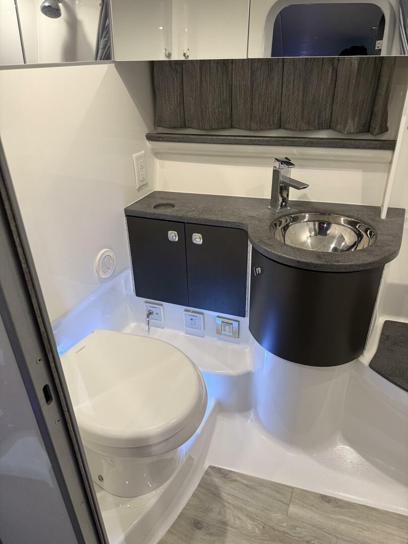 - Head Compartment: A private, molded head with a VacuFlush® unit, vanity, and a separate stall shower.