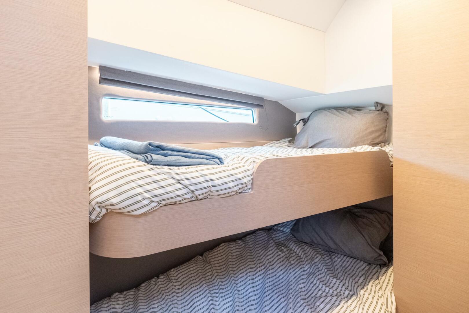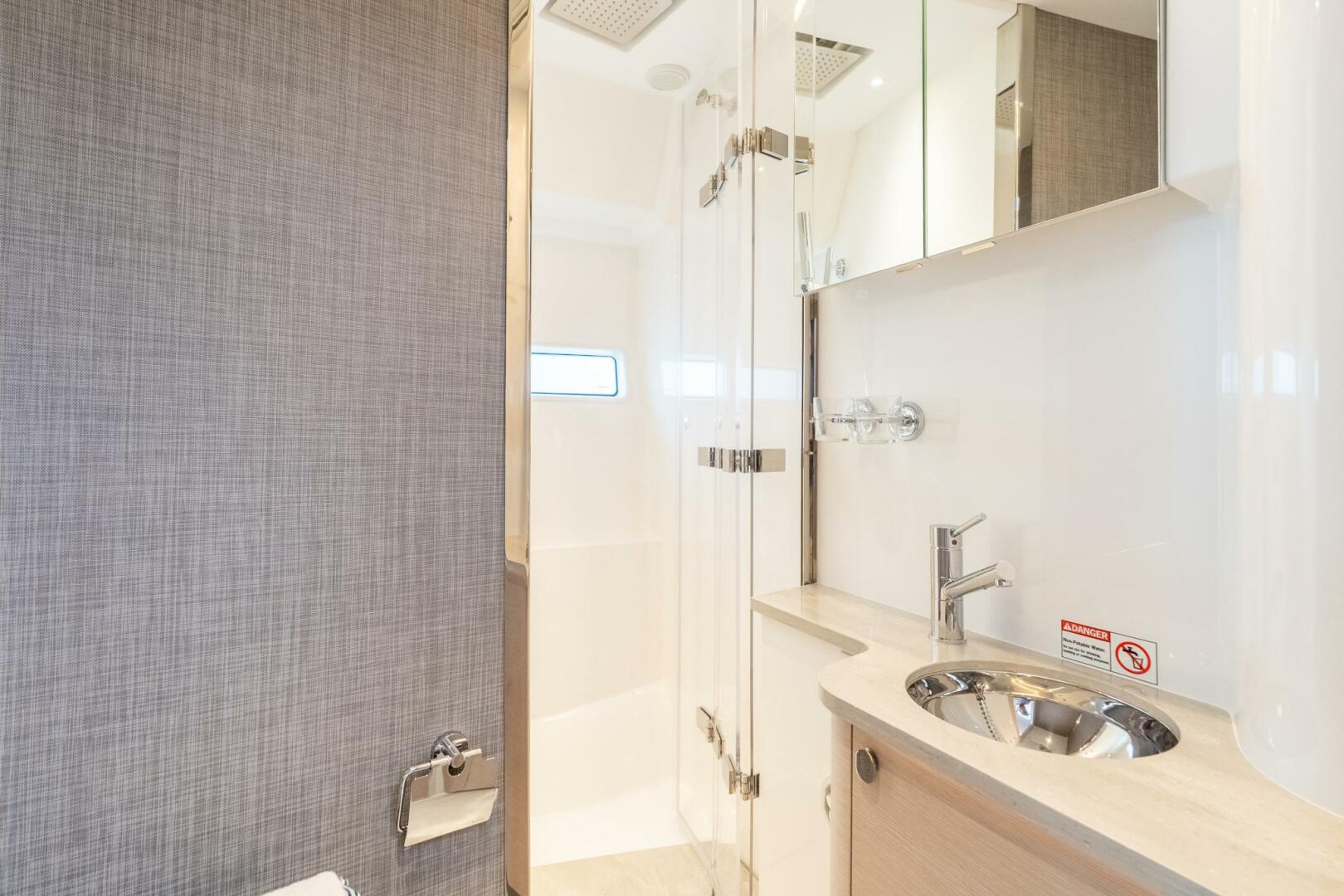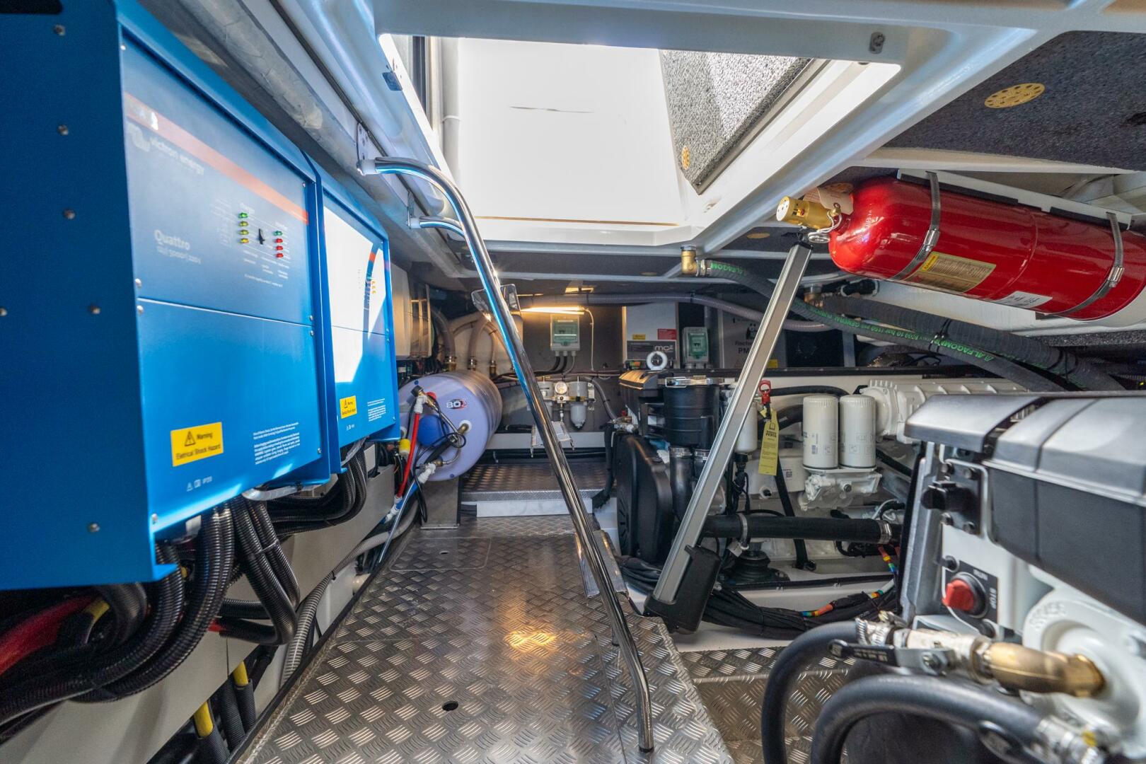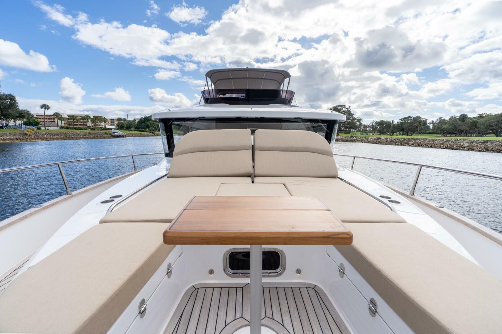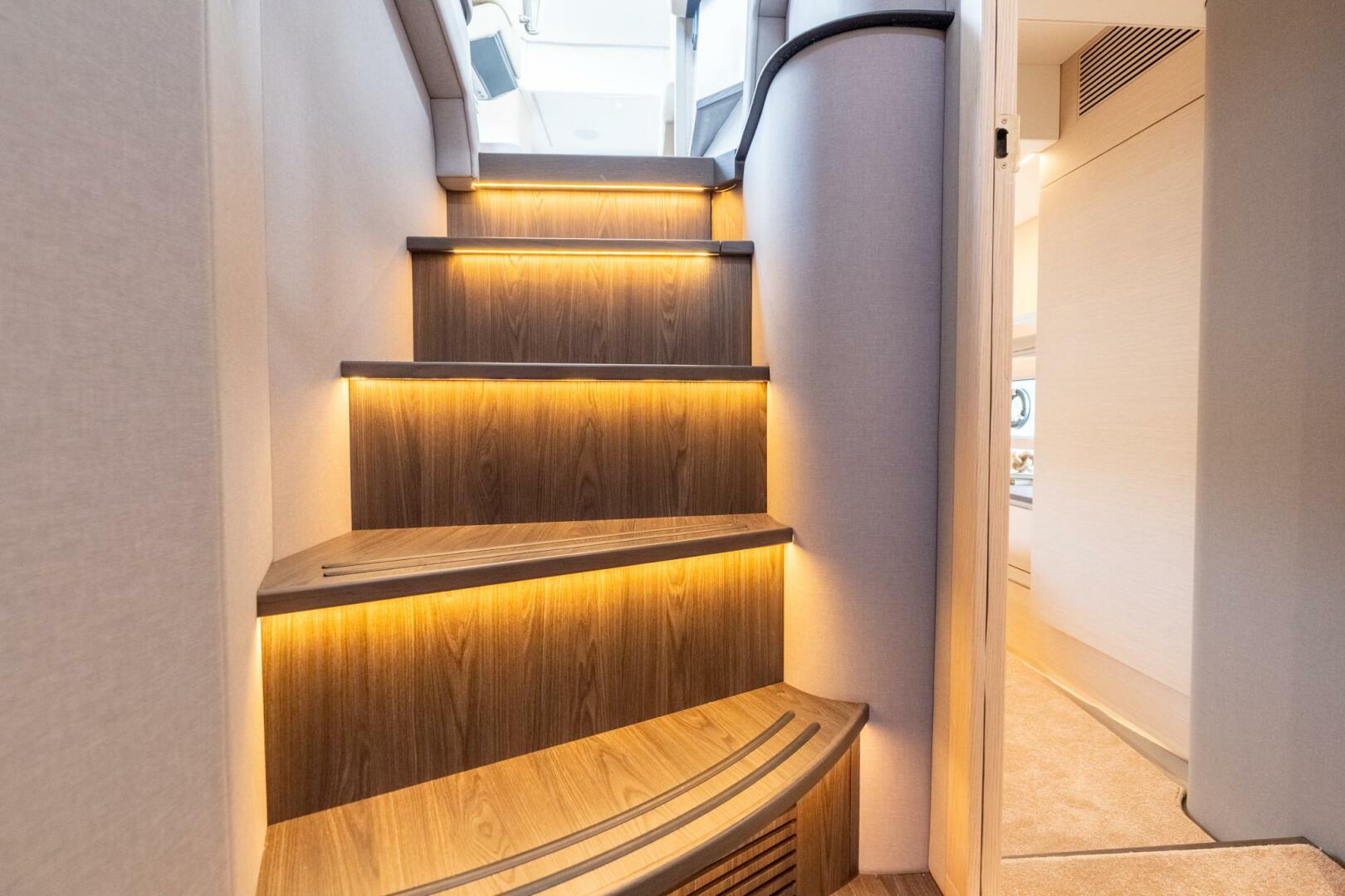 The interior is bright, modern, and meticulously finished, offering generous accommodations for extended cruising. Large panoramic windows flood the salon with natural light, while the open galley and dining area create a seamless social space. Multiple staterooms provide private, comfortable accommodations for owners and guests, making the 495 Fly equally suited for weekends aboard or longer coastal adventures.
