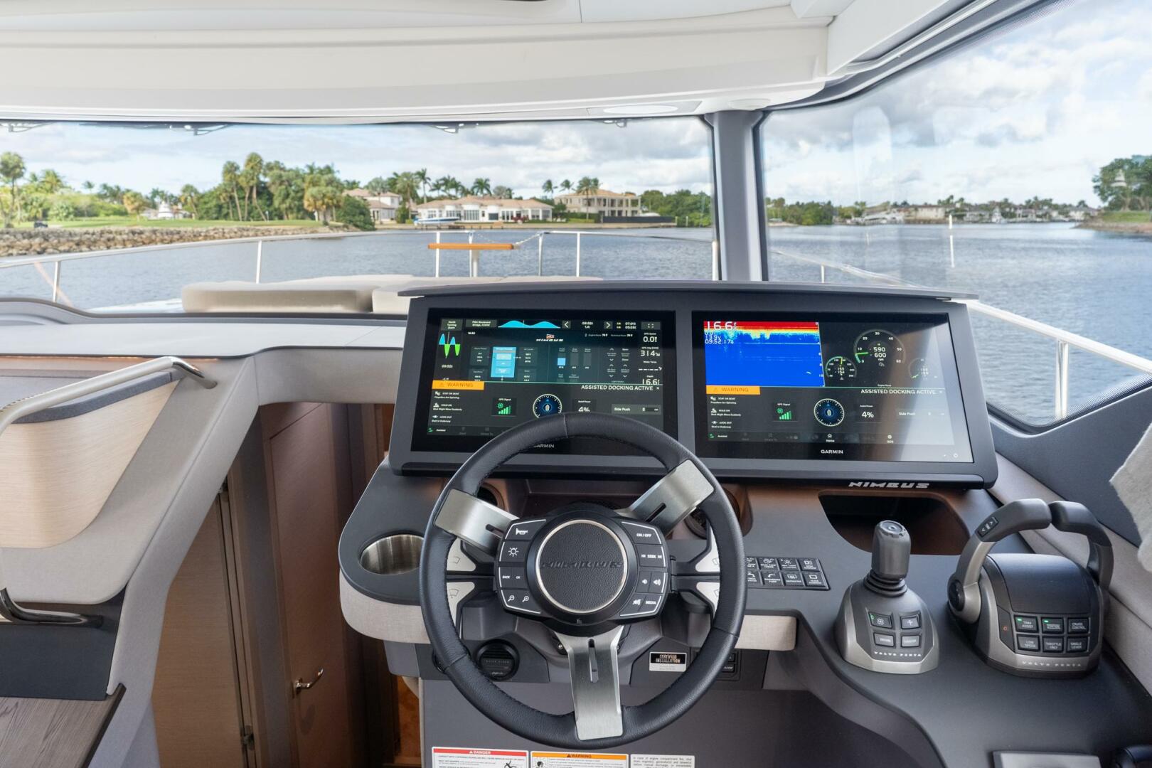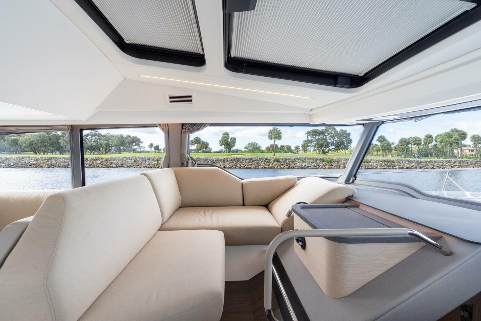 Designed for owners who value space, safety, and effortless operation, the Nimbus 495 Fly features a wide, well-protected flybridge ideal for entertaining, dining, and commanding visibility underway. Below, the yacht showcases Nimbus’ hallmark walkaround deck layout, allowing for safe and easy movement from bow to stern—perfect for families and cruising couples alike.