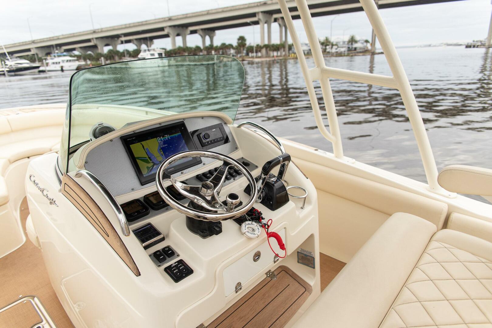 The Chris-Craft Catalina 26 is all about luxury. The graceful silhouette accommodates 8 passengers with expansive seating. For protection and comfort on long days, the deep V hull and flared bow keep spray at bay and all passengers dry on deck, and should you choose, there’s an extendable sunshade that slides aft to provide rear coverage overhead. Powered by the Preferred Twin Yamaha 200hp This boat is a blast to drive, Both Fast and Fuel Efficient, that will make your day on the water that much more enjoyable! This boat has been Kept in Dry Stack Storage its entire Life and it Shows! Electronics: Garmin 7612 XSV Fusion Stereo JL Audio Speakers Lenco Trim Tabs Yamaha Digital Displays Optimus Power Steering Lumitec Spreader Lights Other Features: Windlass Anchor Teak Toe Rail & Accents Upholstery Throughout in Great Shape Fold Down Rear Seating Electric Head Floor Covering Aft Boarding Door Extended Sunshade Leaning Post Live Well 8 Fishing Rod Holders Stainless Steel Rub Rail Two tone Navy Blue/Off White Hull Color Custom Paint Matched Engine Color Interior Courtesy Lighting Please Contact Today to Schedule a Private Showing