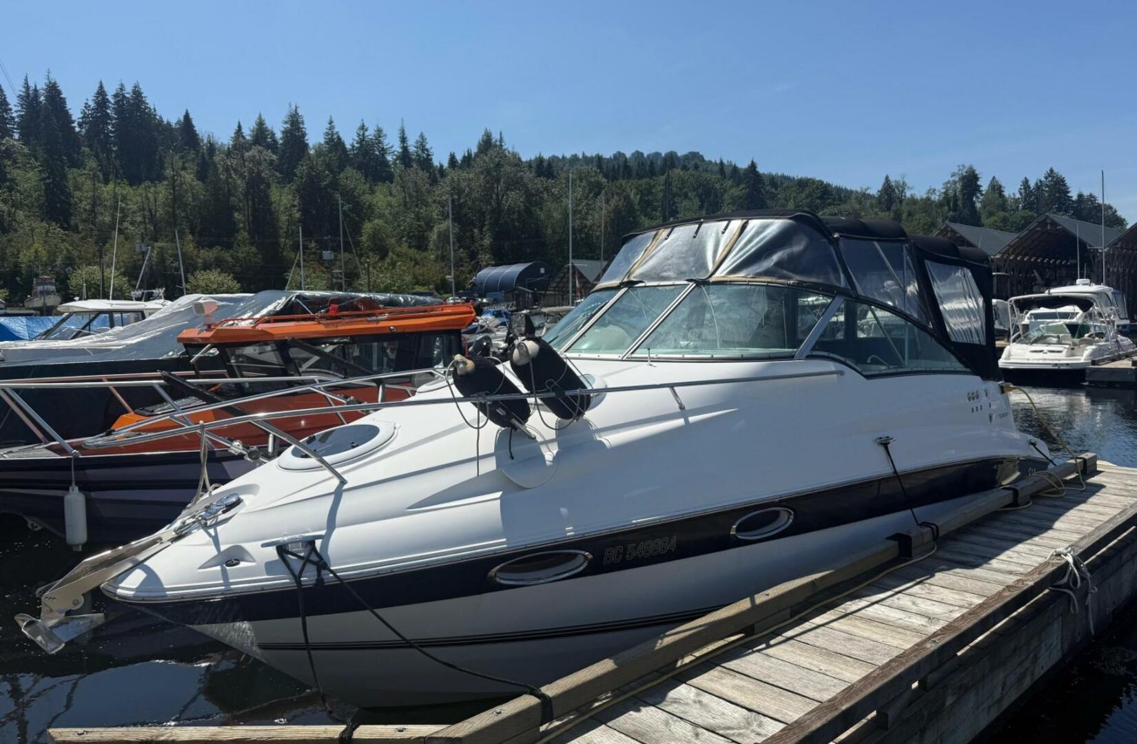 Powered by rthe robust, high‑performance MerCruiser 496 MAG H.O. with Bravo III O/D, the Allante 825 delivers confident handling in all conditions, whether exploring the Gulf Islands or running the open waters off Vancouver. The vessel is equipped with premium features including an inverter, Buss heating, and a full camper enclosure, making it truly turn‑key and ready for adventure.