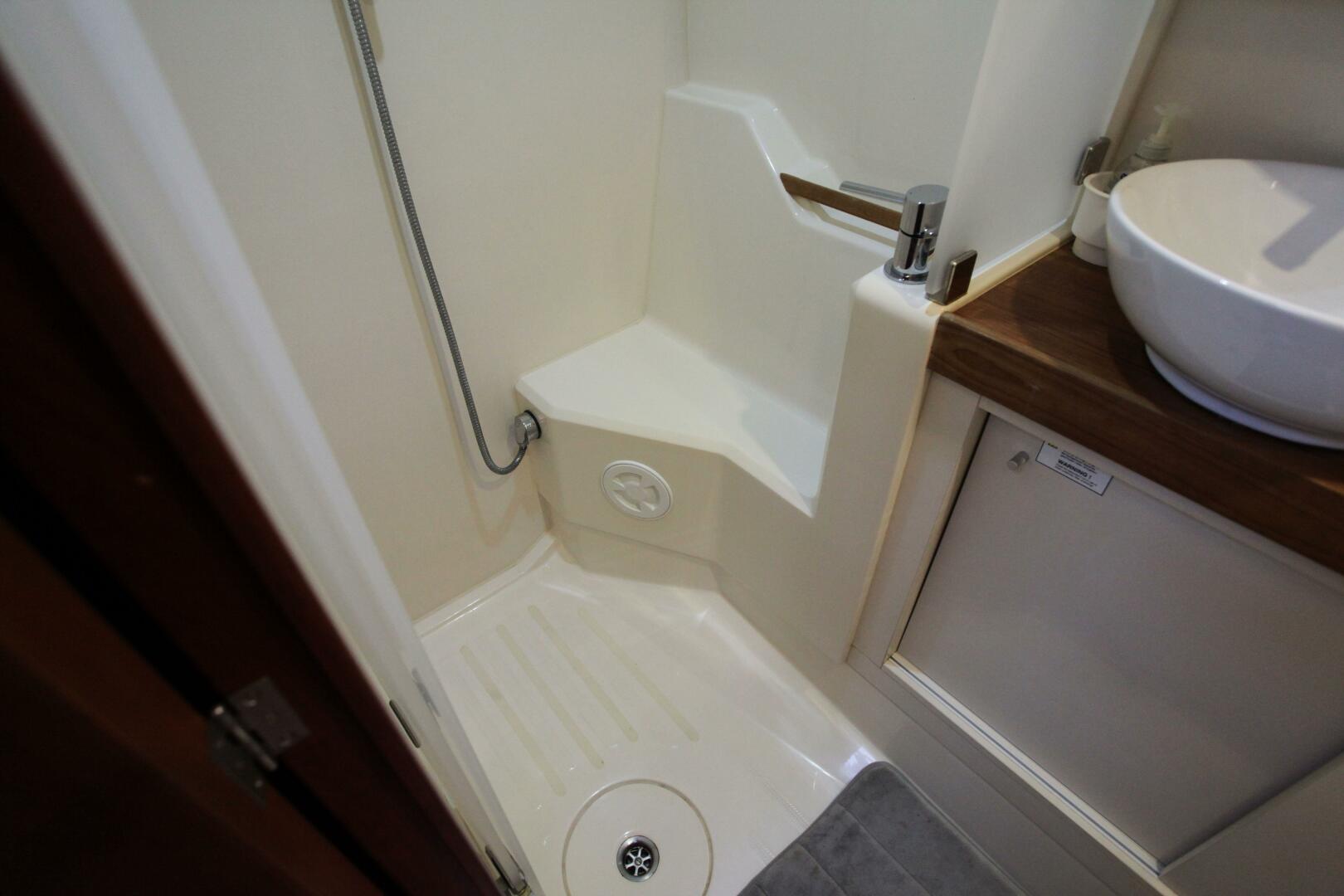 - Separate forward shower to starboard.