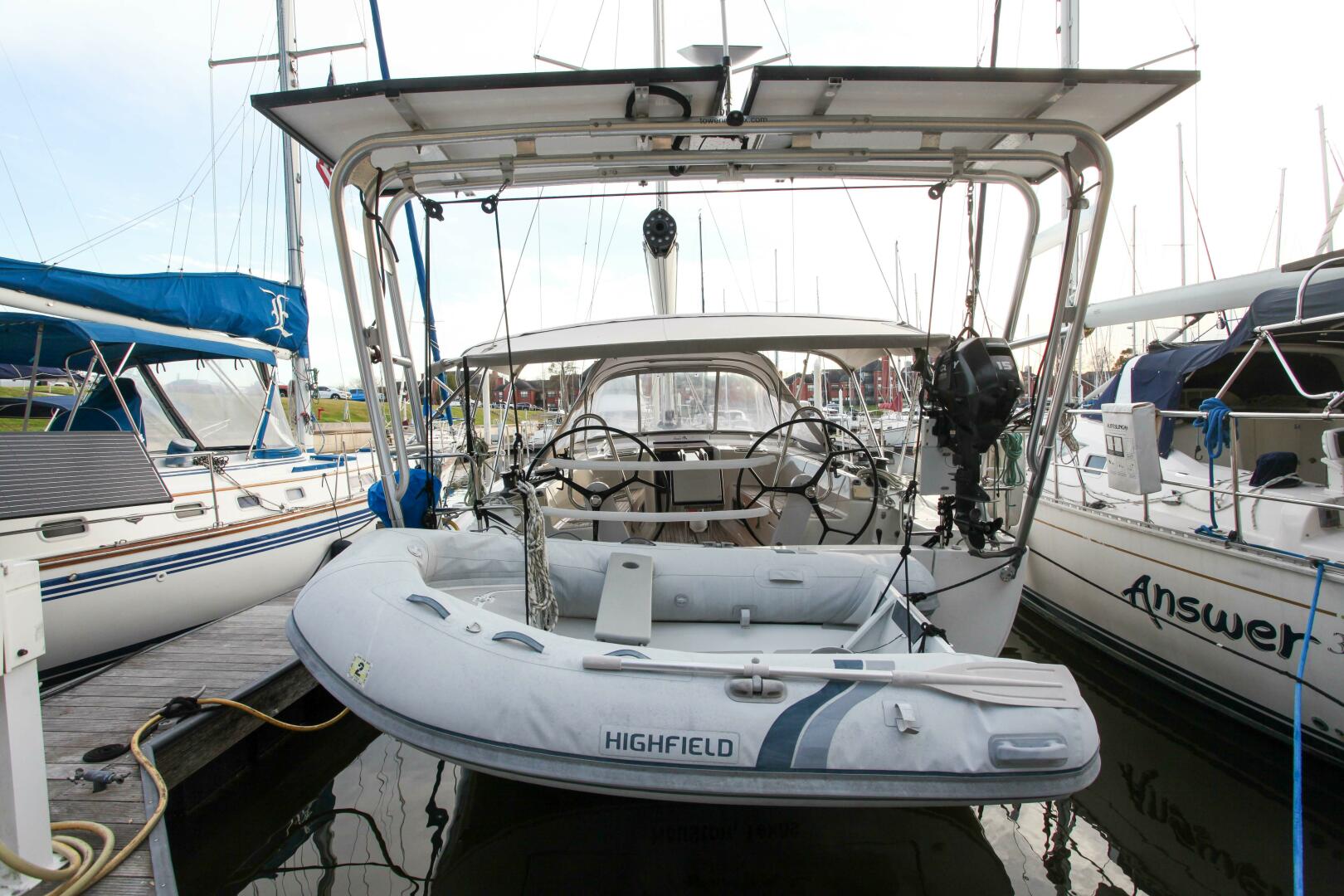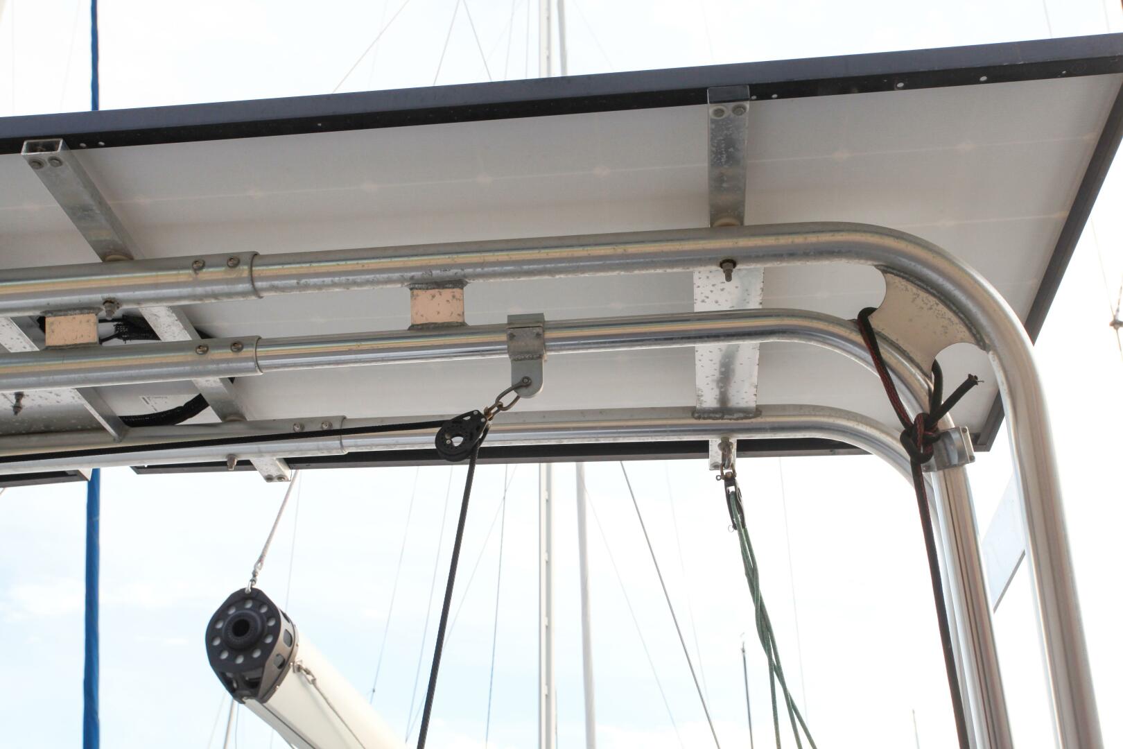 - Atlantic Towers Dingy davit arch system with solar overhead and Starlink