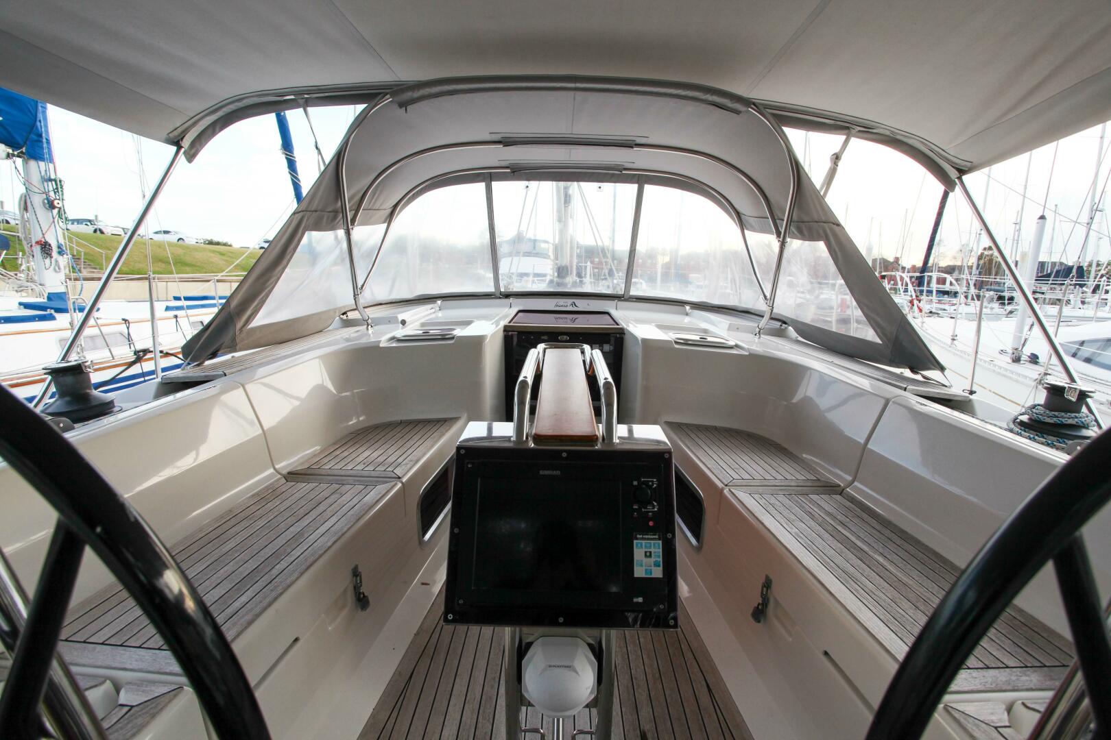 - Simrad plotter and full instrumentation with autopilot at helm (NSS 8 multi-function radar/chart plotter touch screen display; NSS 12 multi-function radar/chart plotter touch screen display; IS 20 wind display; IS 20 multi-function display; autopilot)
