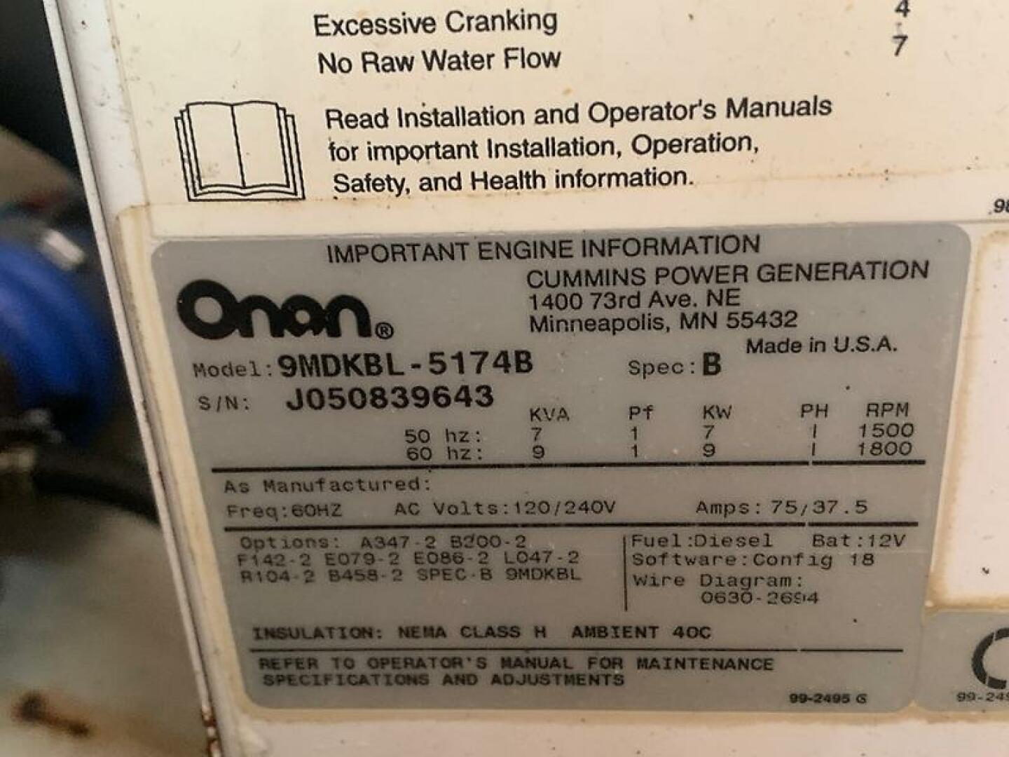 - Onan 9kw Generator (less than 800 hours)