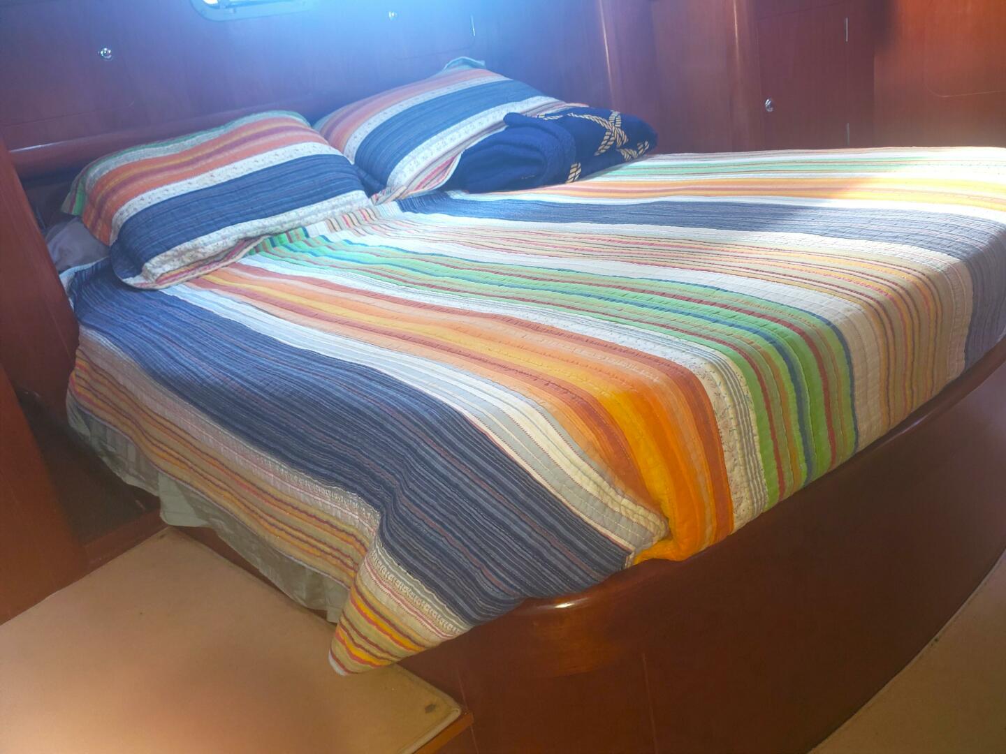 - Layout: Forward pullman berth cabin, central saloon with navigation station & galley, aft owner's cabin with ensuite head/shower.