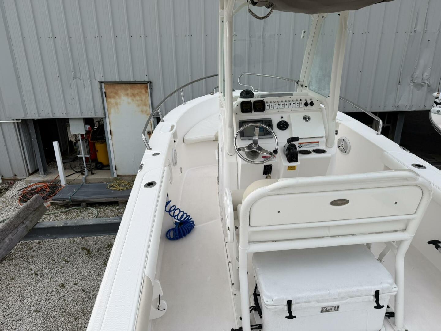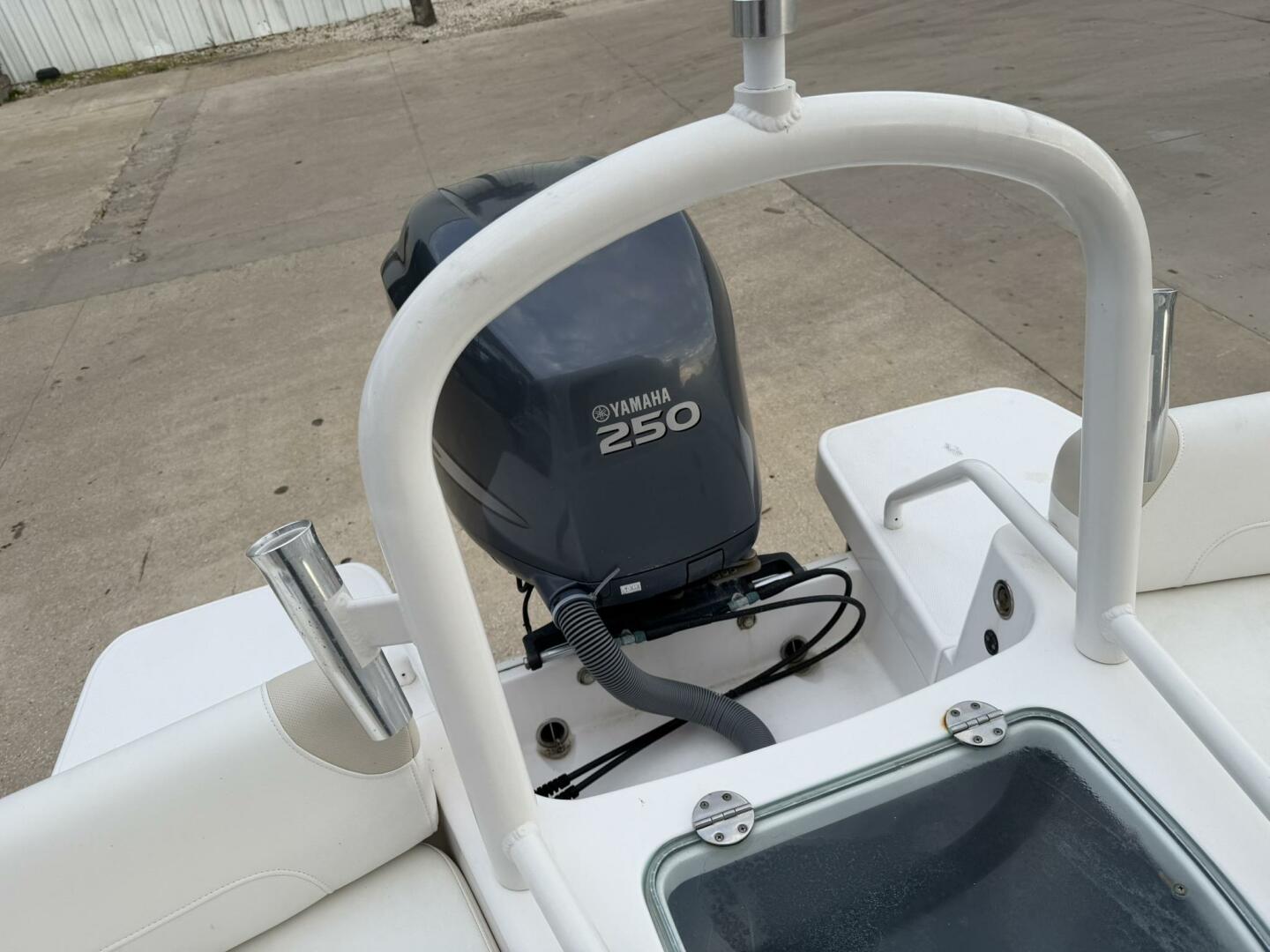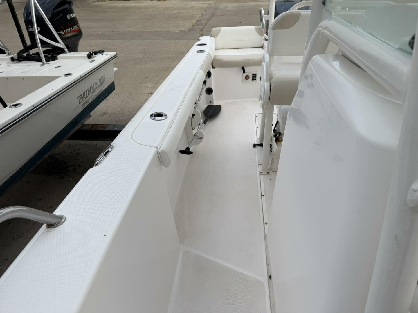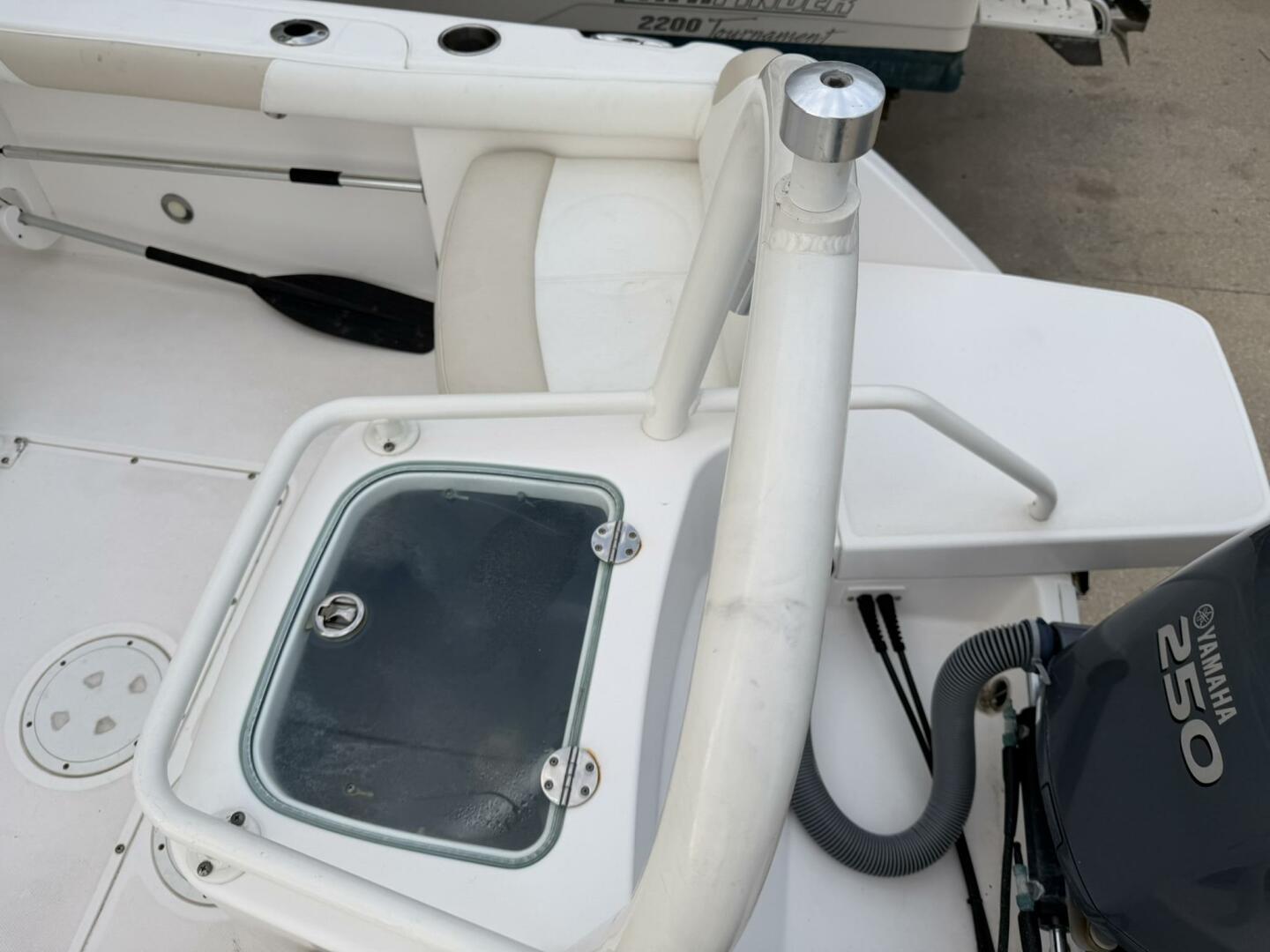 | Notable Upgrades: • Powder-coated hardtop with integrated speakers & lighting • Powder-coated mosquito/tow bar • Clarion stereo system with multiple speakers • Garmin 4208 GPSMap • West Marine VHF 580 • Electro-Tab trim tabs (Lenco / Electro-Tab) • Yamaha digital gauges (hours/engine data) • Porta-potty in large console compartment • Built-in livewell |