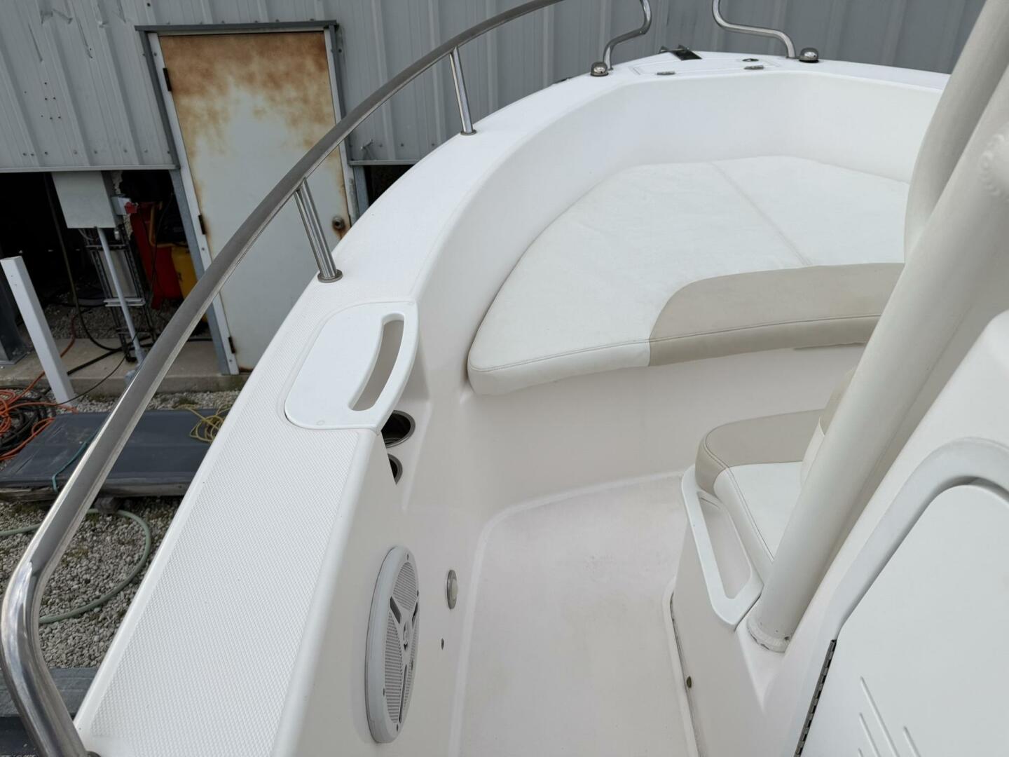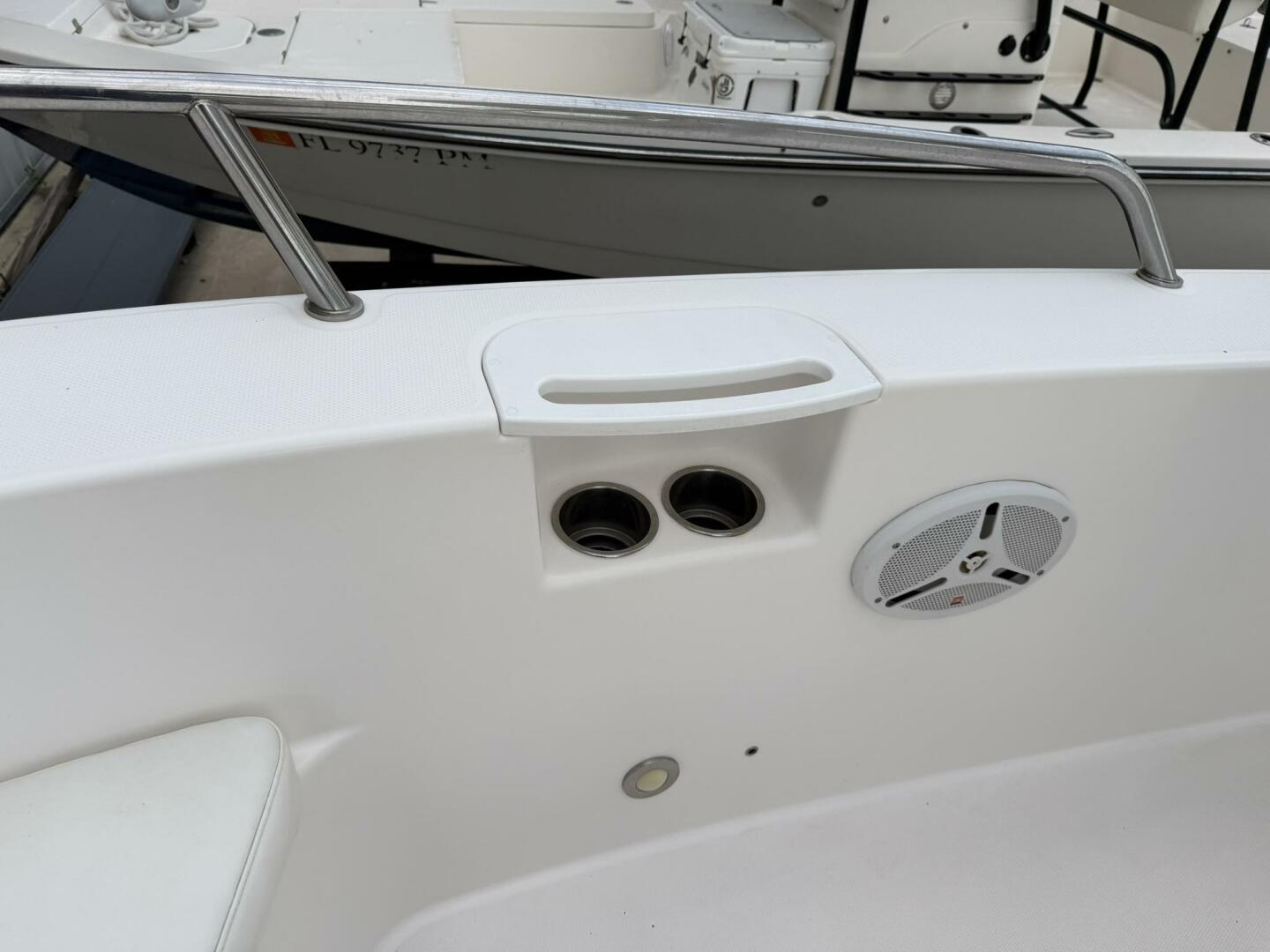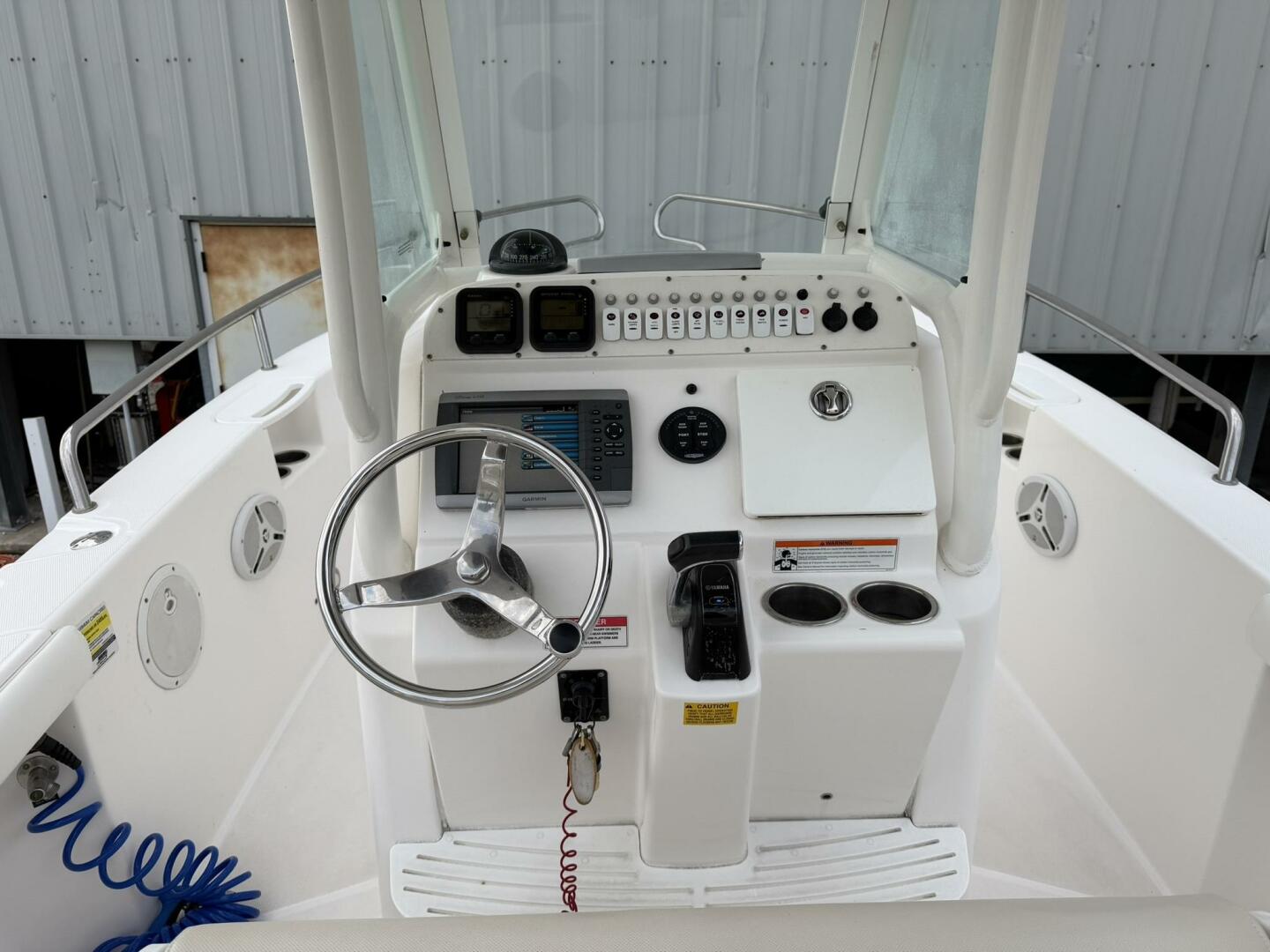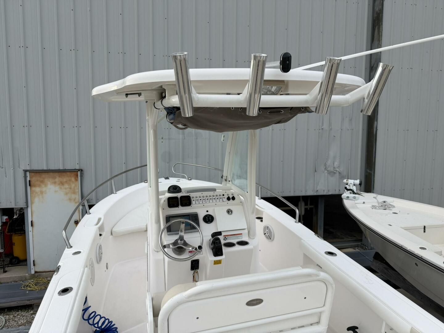 | Notable Upgrades: • Powder-coated hardtop with integrated speakers & lighting • Powder-coated mosquito/tow bar • Clarion stereo system with multiple speakers • Garmin 4208 GPSMap • West Marine VHF 580 • Electro-Tab trim tabs (Lenco / Electro-Tab) • Yamaha digital gauges (hours/engine data) • Porta-potty in large console compartment • Built-in livewell |