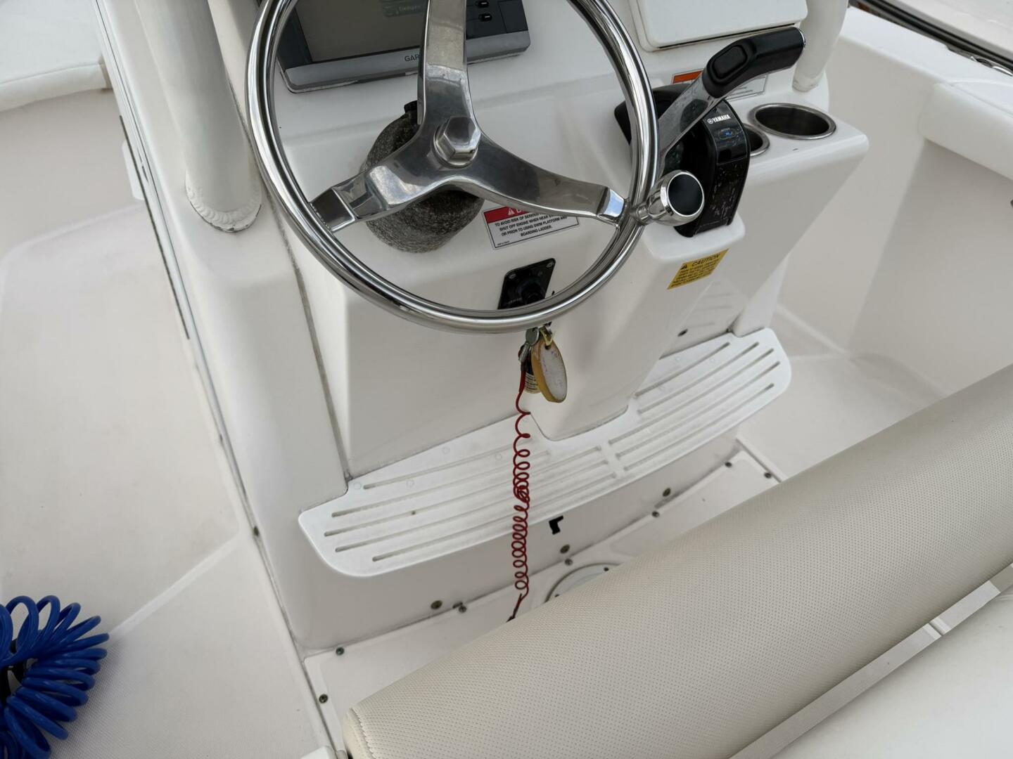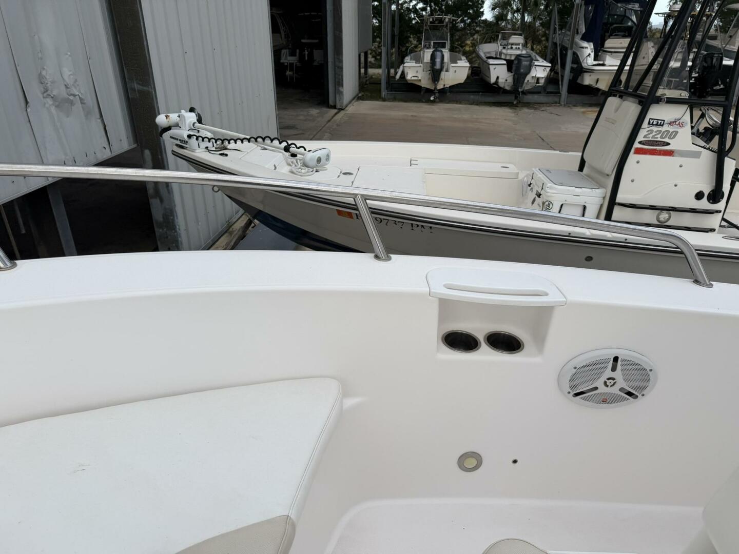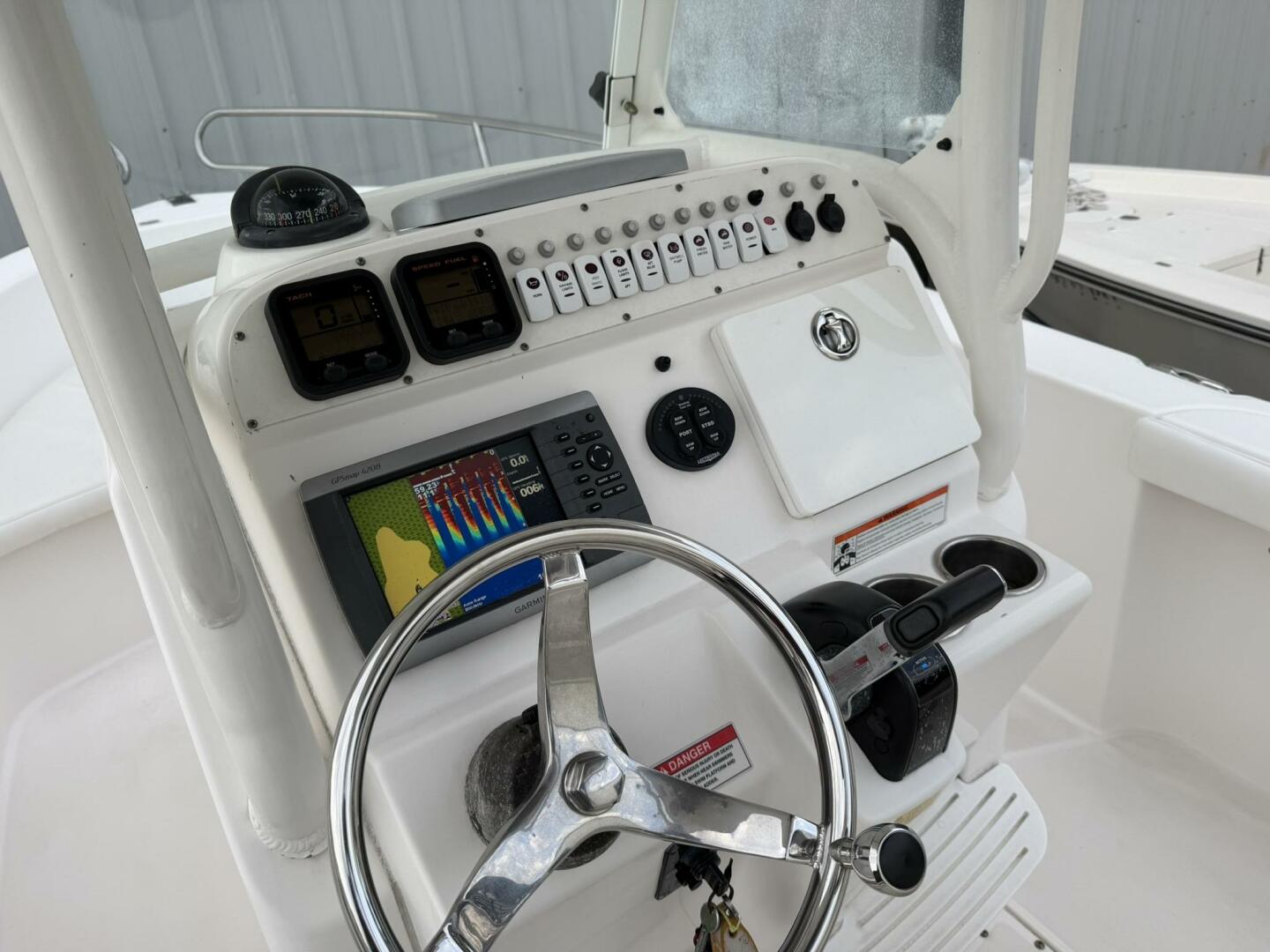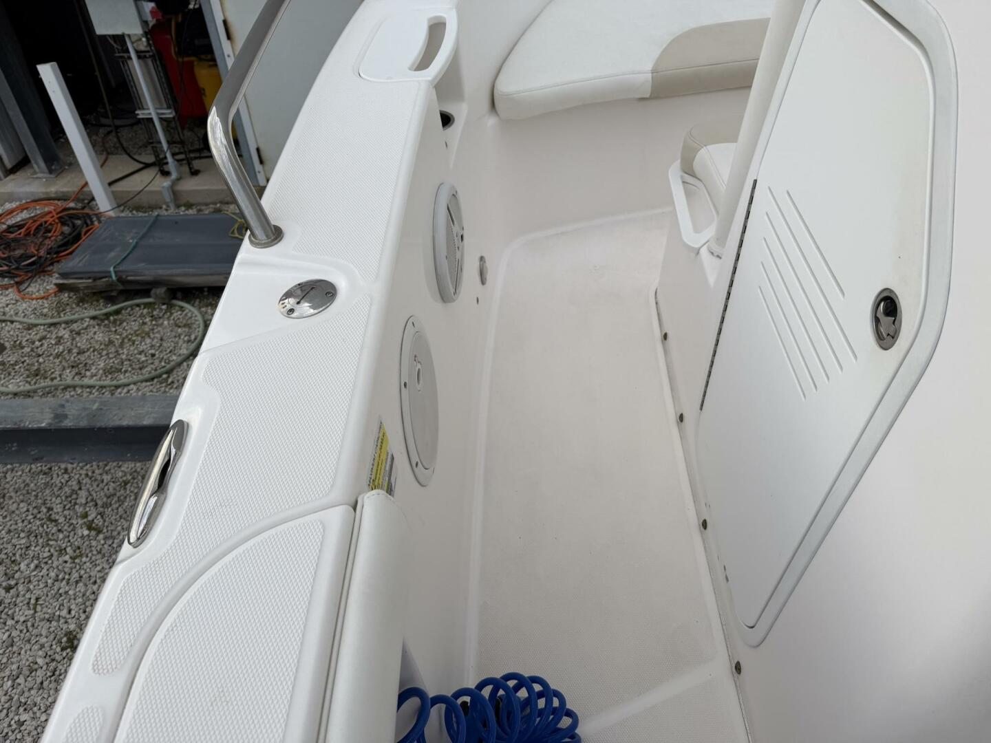 | Notable Upgrades: • Powder-coated hardtop with integrated speakers & lighting • Powder-coated mosquito/tow bar • Clarion stereo system with multiple speakers • Garmin 4208 GPSMap • West Marine VHF 580 • Electro-Tab trim tabs (Lenco / Electro-Tab) • Yamaha digital gauges (hours/engine data) • Porta-potty in large console compartment • Built-in livewell |