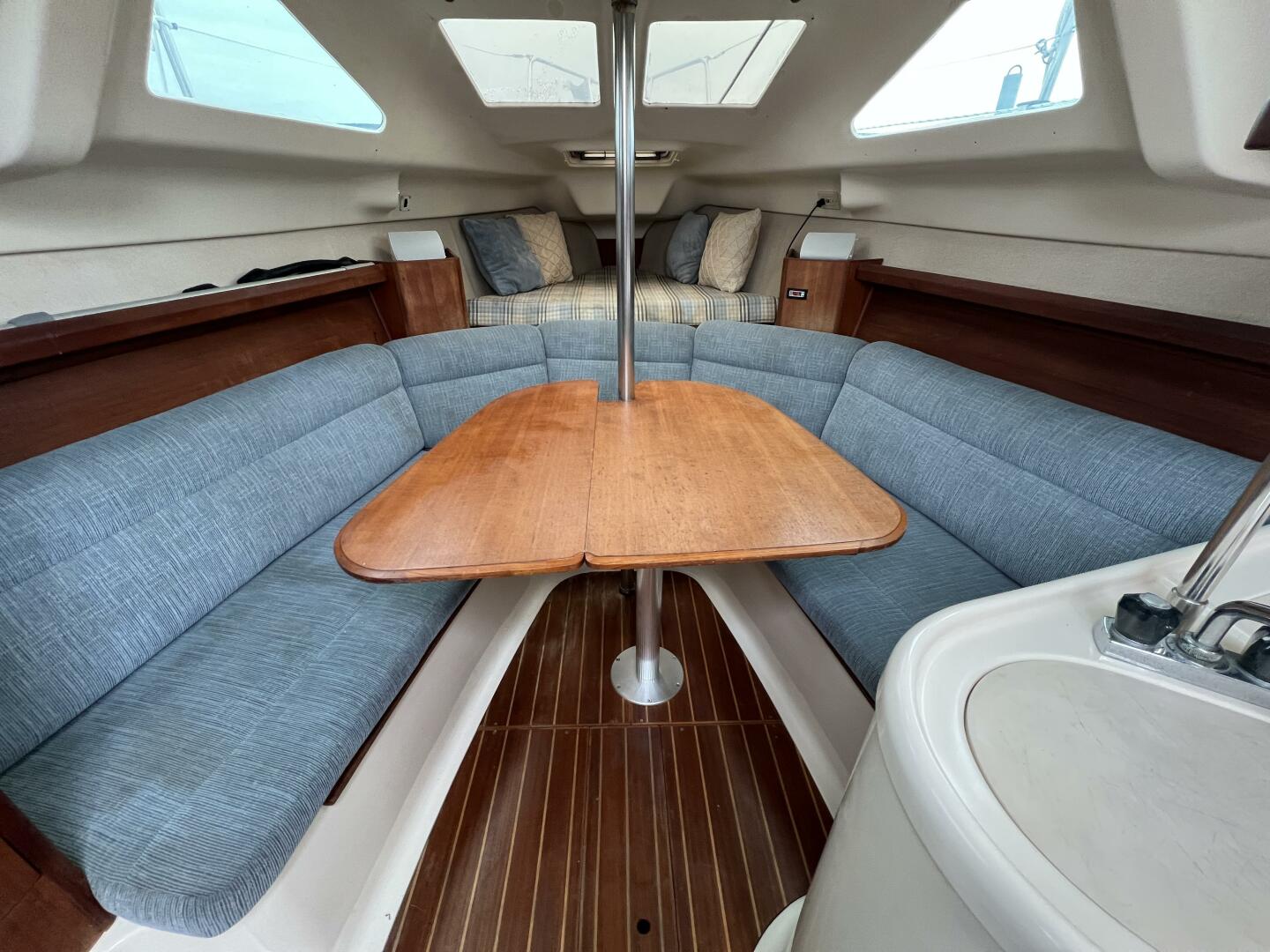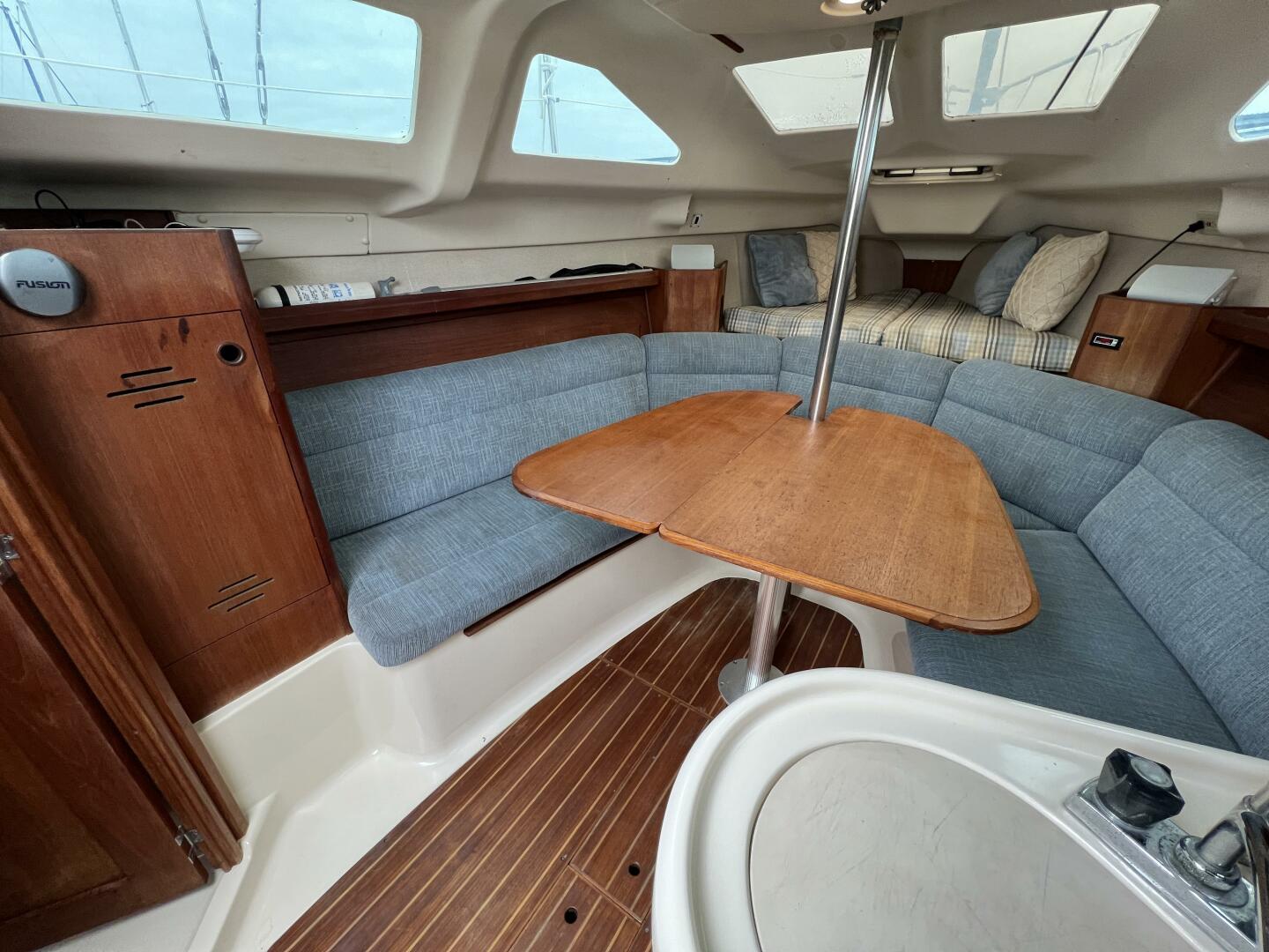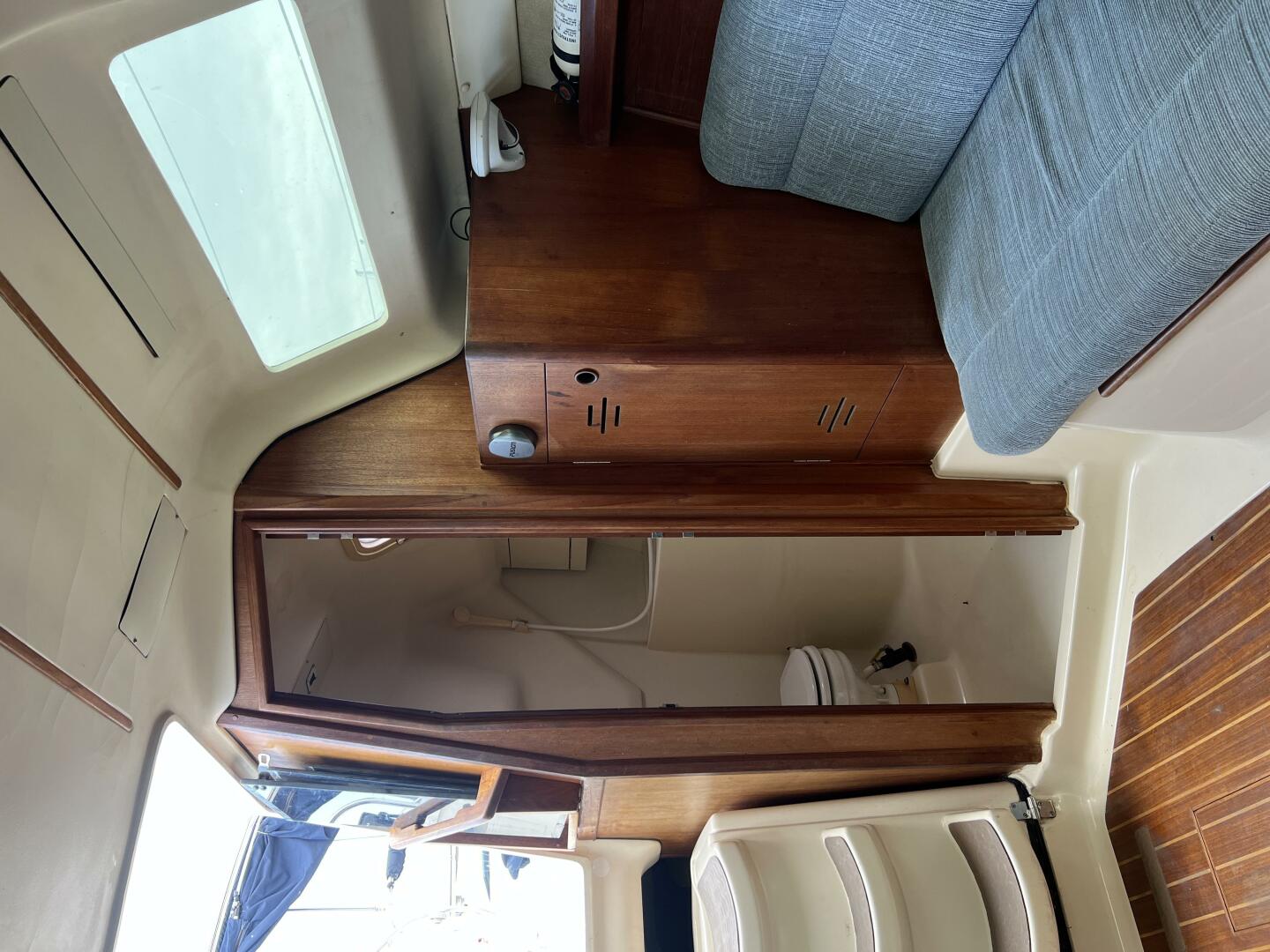 • Cabin Sole: Fiberglass with teak accents