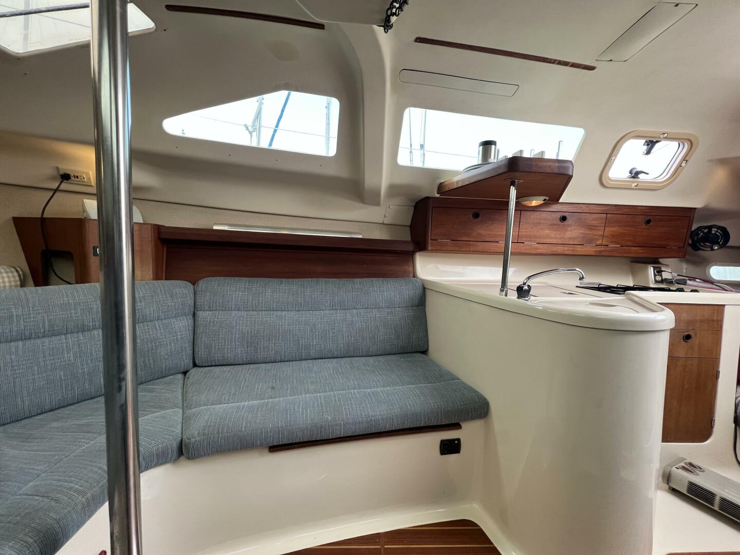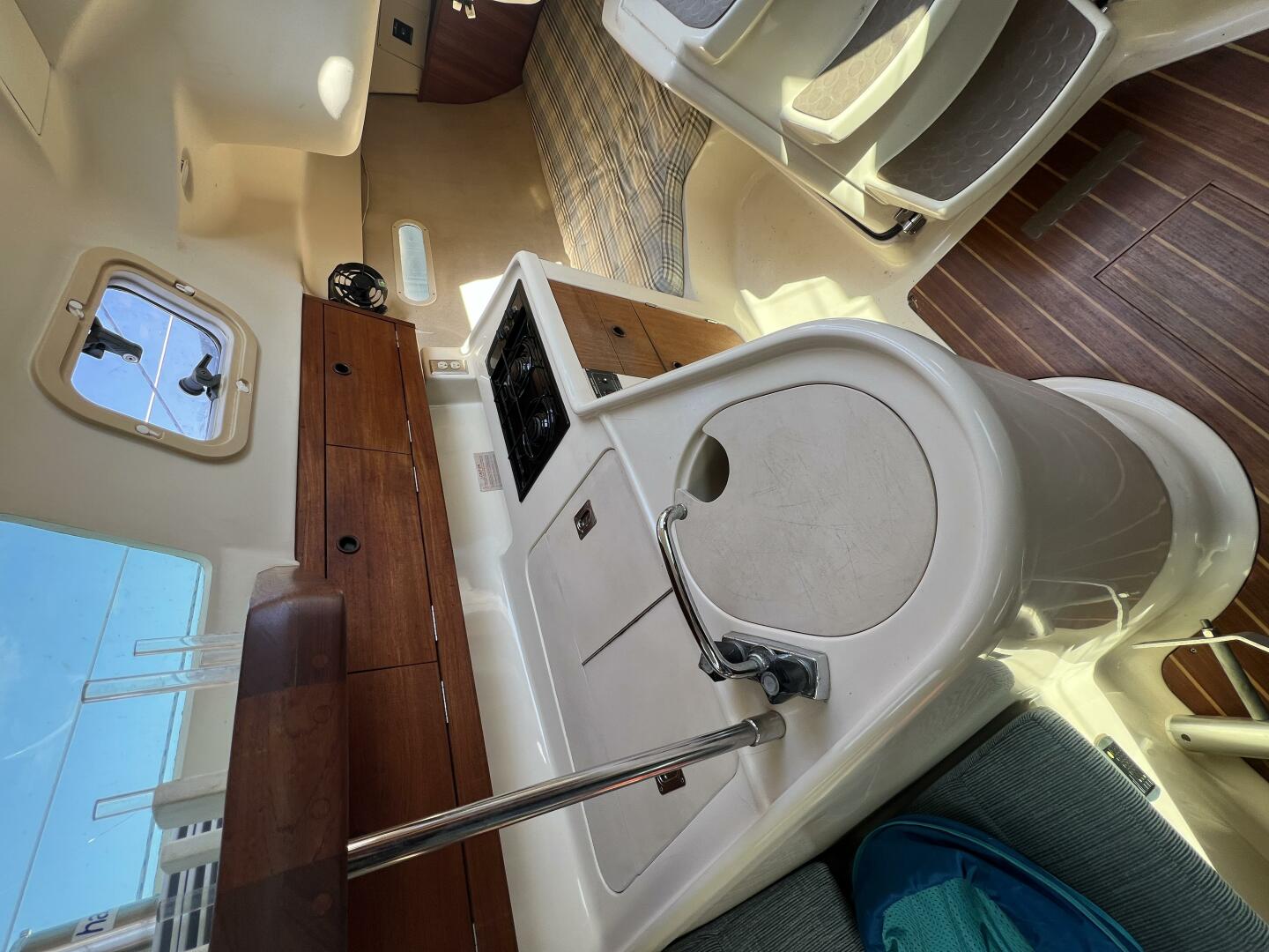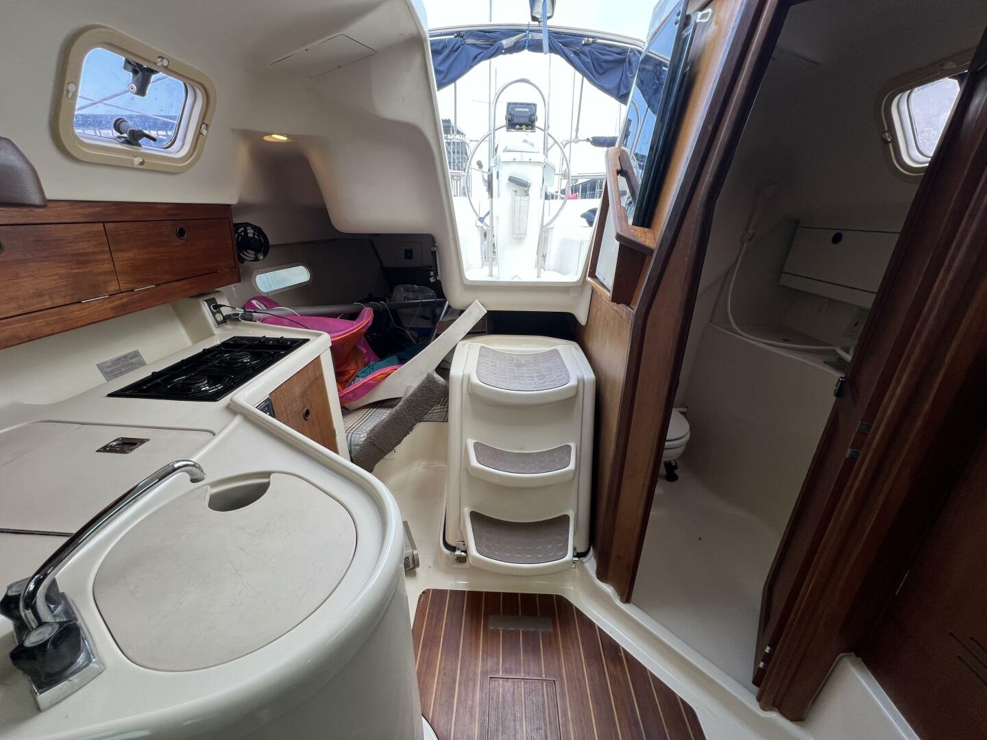 • Cabin Sole: Fiberglass with teak accents