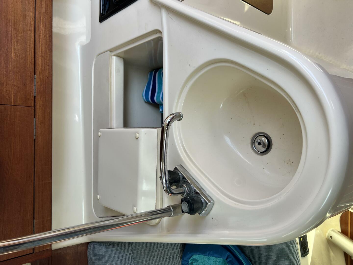 • Head: Manual toilet, sink, and shower