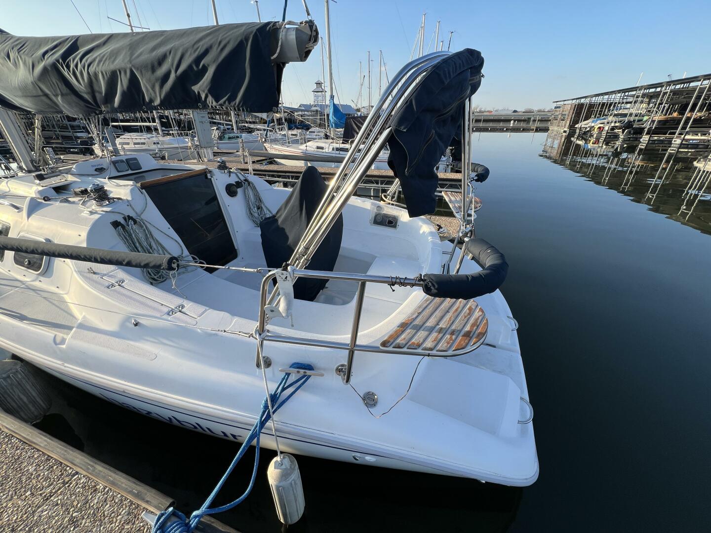 Hazyblur is a freshwater boat previously located on Grapevine Lake. Powered by a reliable and fuel-efficient Yanmar 2GM20F, it features a mainsail-driven setup with a headsail, plus a spinnaker and pole. Low maintenance and easy to sail.