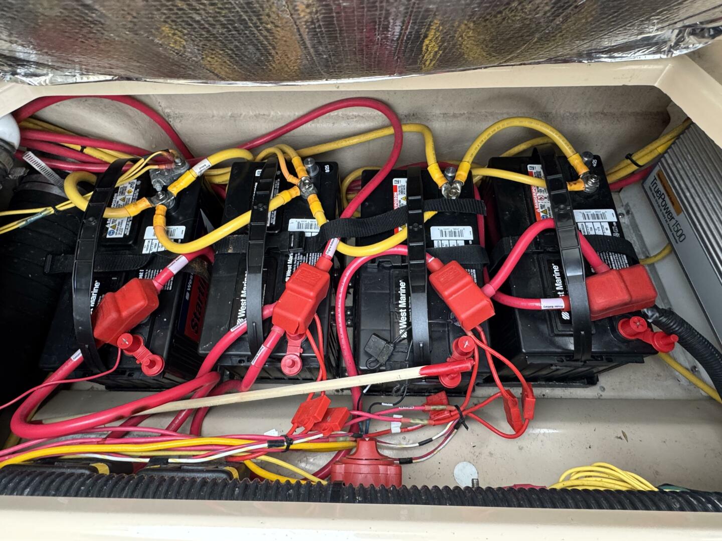 All four batteries were replaced two months ago, all exterior canvas (except eyebrow) is a year old, rear helm Volvo control replaced last year, regularly dove, recently detailed inside and out, all route maintenance done annually, most recent service completed June 2025, and extensive maintenance a