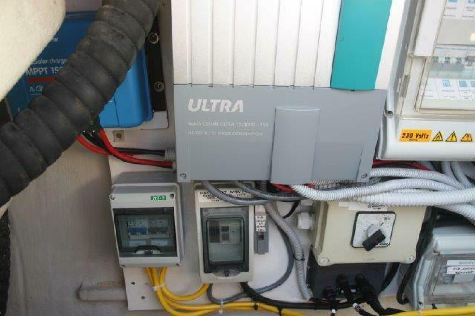 Solar and Inverters: 3 solar panels, 200 watt each, 4 lithium ion batteries (600Amp hour), Mastervolt Mass Combi Ultra 12/3000 inverter capable of running multiple solar panels, Victron Phoenix 12/3000 for running appliances off solar batteries
