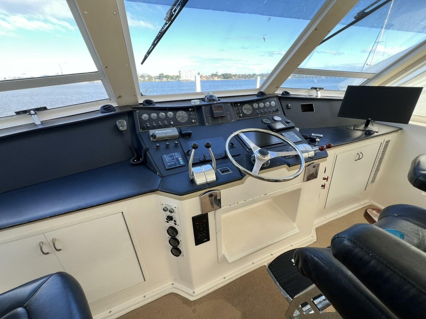 FLYBRIDGE GLASS PANES WITH SLIDING WINDOWS AND POWERED BROW VENTS