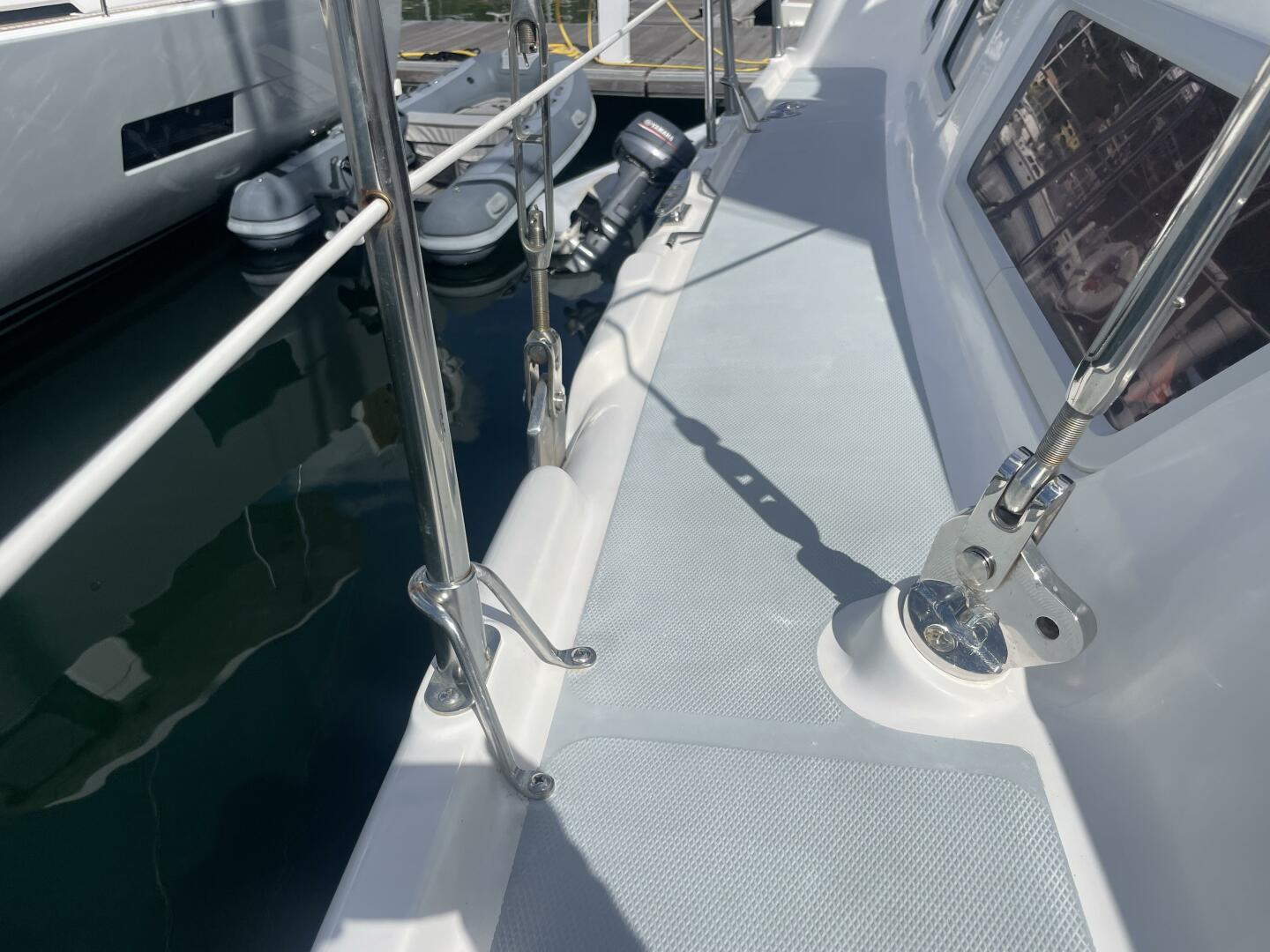 Zenato fell over on land in Hurricane Irma many years ago, and sustained damage to her hull and keel (one keel fin is currently bent) the owners declare that this has no effect on her sailing or use. The brokers recently surveyed with another buyer and will discuss findings in detail with potential buyers, however most findings are being attended to immediately in keeping with the vessels consistently excellent care. The mast and rigging were replaced in 2019, and the sails were updated in 2019 and 2020 with a 130% Quantum genoa and a main sail from Quantum. Easy to use rigging with all controls from the cockpit make the boat simple to sail.