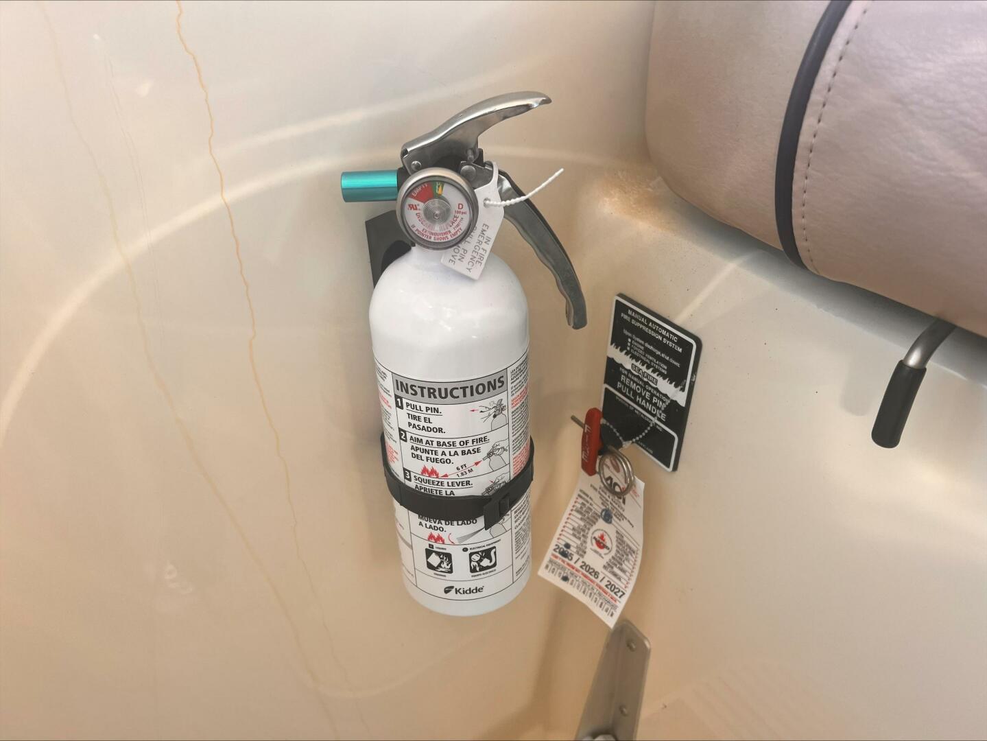 - Handheld fire extinguisher at helm