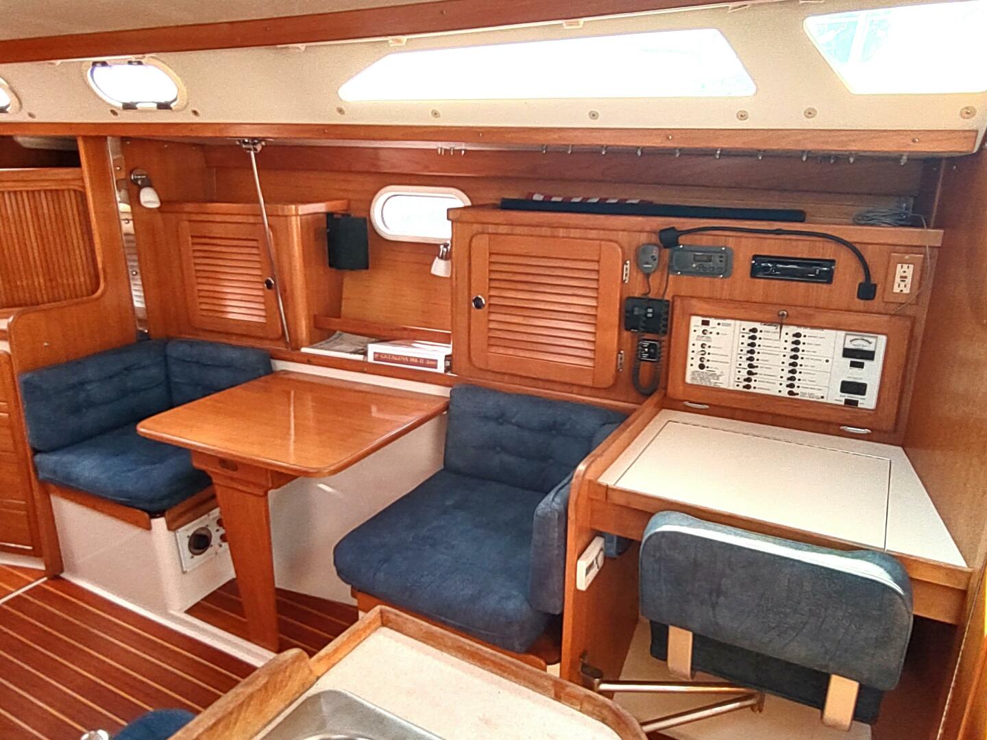 Because the Catalina 36 is easily handled by a couple, has a big comfortable cockpit, a spacious interior with two private cabins and the integrity to pursue cruising dreams, many experienced sailors consider the Catalina 36 the perfect boat for their sailing lifestyle. The Catalina 36 MkII has all the important characteristics that made the original the most popular 36-foot sailboat in the world. The Mark II Catalina 36 is built in the same seakindly moderate displacement hull. It tracks surely and performs well in a variety of conditions. The deck is the classic trunk cabin configuration - proven, comfortable and functional. The main cabin and galley have received special attention to design and detail. The galley is a functional 'U' shape, with composite countertops, the sinks are near centerline for proper drainage underway. A large refrigerated ice box is aft and a dry food locker is forward. A gimballed, stainless steel LPG stove with oven is standard equipment. The main cabin can be arranged with a dinette or traditional table. The two seats and game table to starboard can be made into a settee or berth with the cushions provided. The entertainment center cabinet can be fitted with a stereo and concealed TV. The main cabin and all interior teak has the warmth and durability only obtained with multiple coats of varnish. The 36 has stainless steel hand rails and anodized spars, reducing maintenance on deck and extending the sailing season. The mechanical, electrical and plumbing systems have been re-engineered to increase dependability and accessibility. Engine access, for example, is excellent, with the one-piece, insulated enclosure removed. The hull is rugged, hand-laminated, solid fiberglass; the keel is lead with integrally cast stainless steel bolts. The mast is stepped through the deck on the keel and has inline spreaders and fore and aft lower shrouds, a sturdy arrangement that is easy to tune.