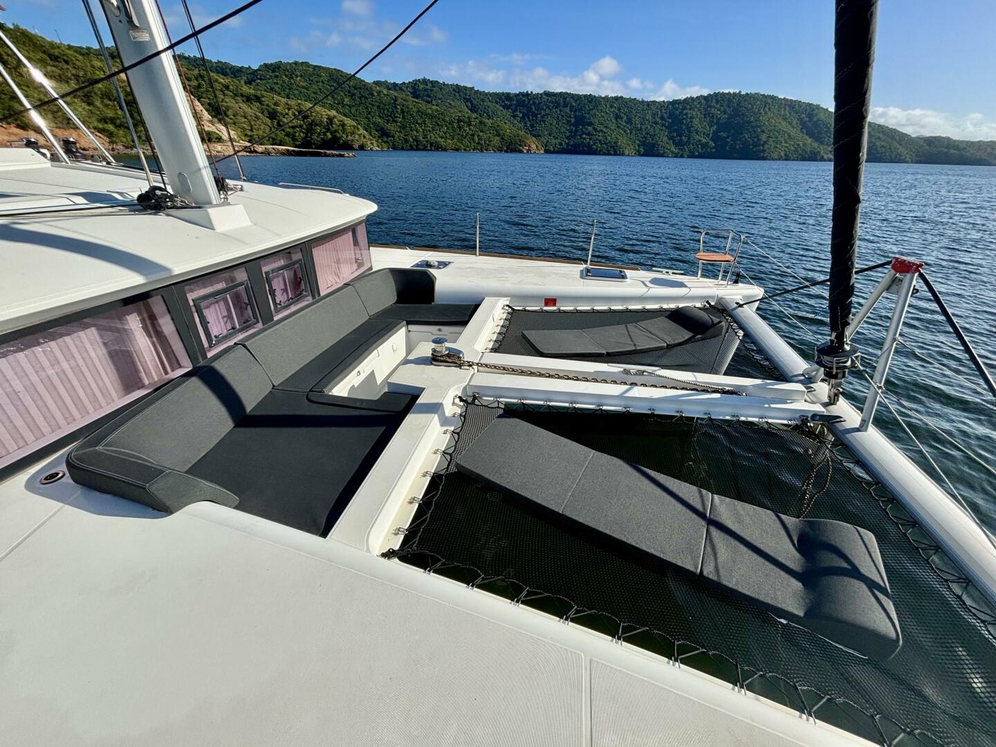 - Spacious sun pad in front of the helm station with cushions