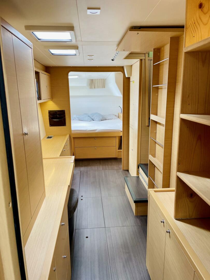 - Port hull forward cabin with double berth (2.05 m / 6’8” x 1.42 m / 4’8” at widest point)
