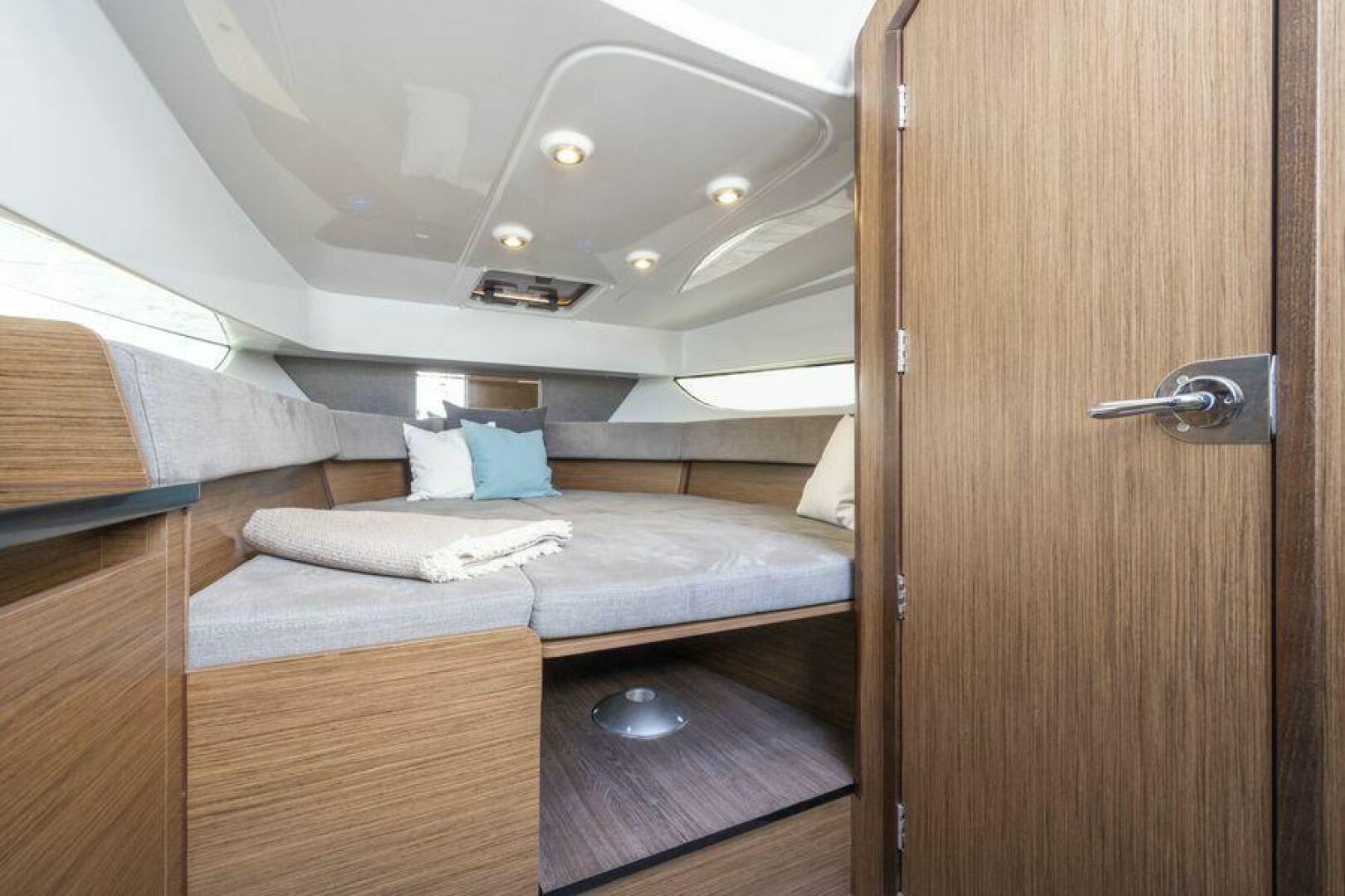 • Electric windlass • Extended swim platform • 65 L refrigerator in the cabin • Interior