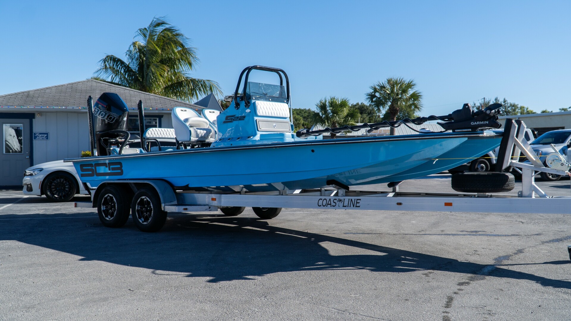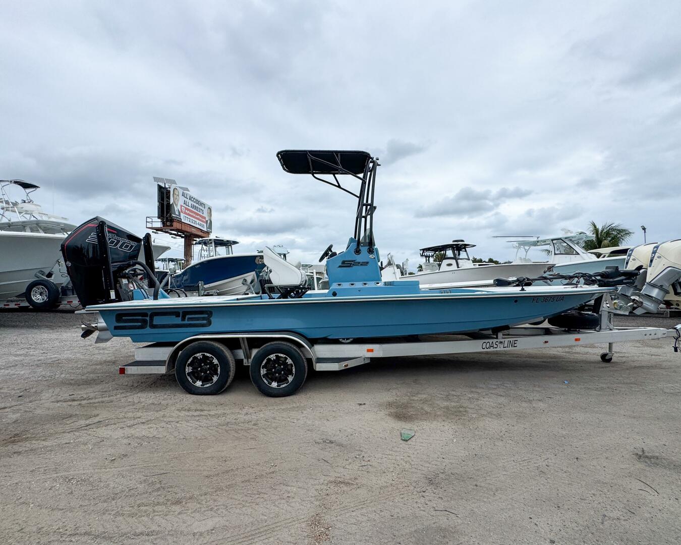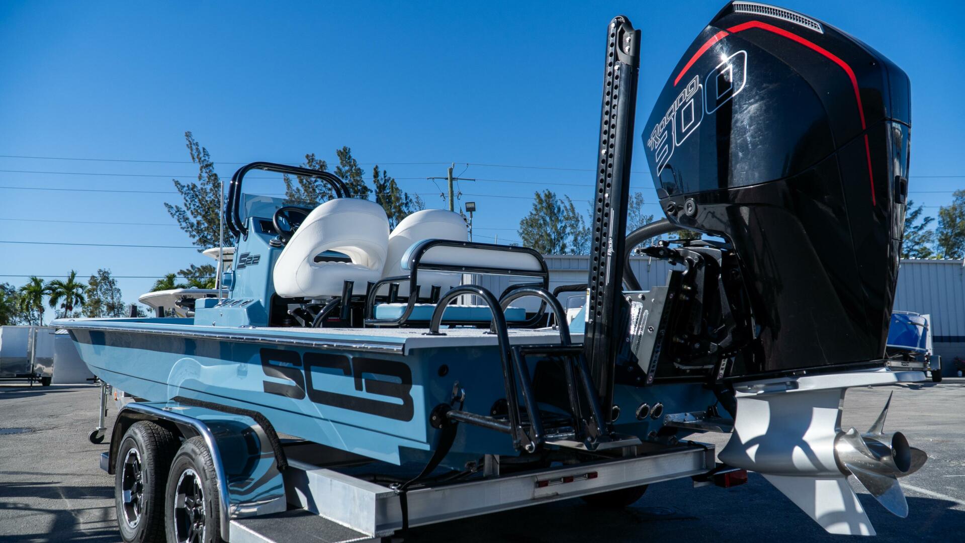 Fully loaded 2024 SCB in stunning Slate Blue, powered by a Mercury 300R with factory warranty through 6/27/2028. Features premium electronics, Power-Poles, Kraken trolling motor, JL Audio, Shockwave seating, and tandem trailer—turn-key and ready to fish.