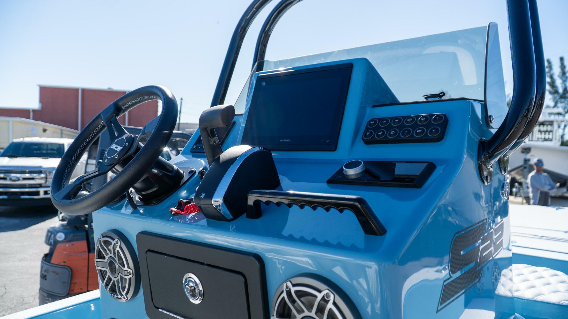 Built for versatility and style, this SCB features a square console with forward livewell, Shockwave helm seating, and a low-profile rod holder setup for maximum fishability and clean deck layout.