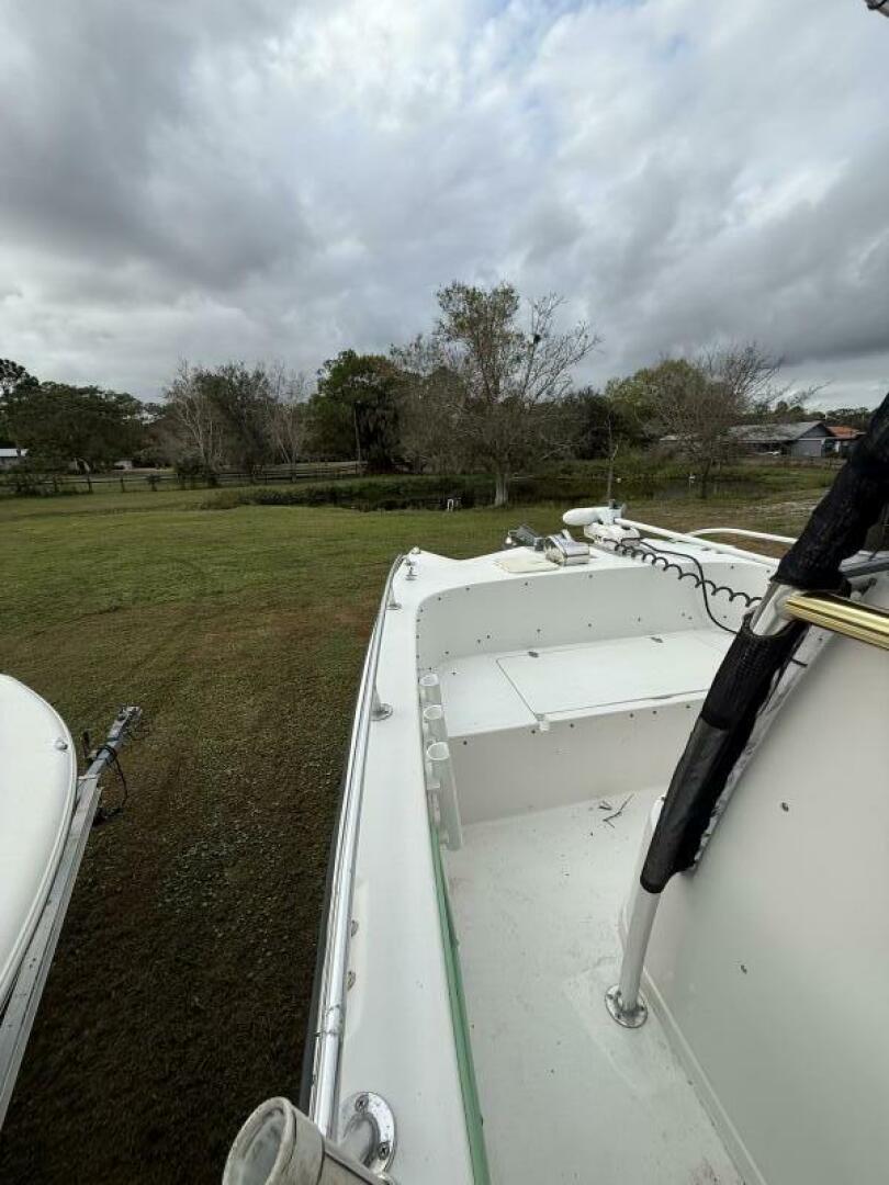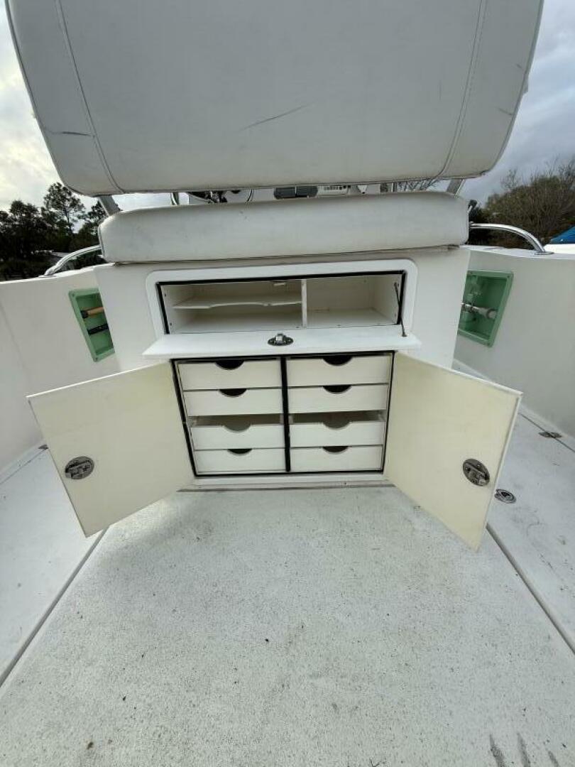Designed with anglers in mind, the stern is exceptionally well laid out, featuring dual oversized fish boxes, two livewells, and an oversized tackle storage compartment, giving you plenty of space to keep rigs, lures, and gear organized and within easy reach. Up top, Taco expandable outriggers and an antenna complete this fully rigged fishing machine.
