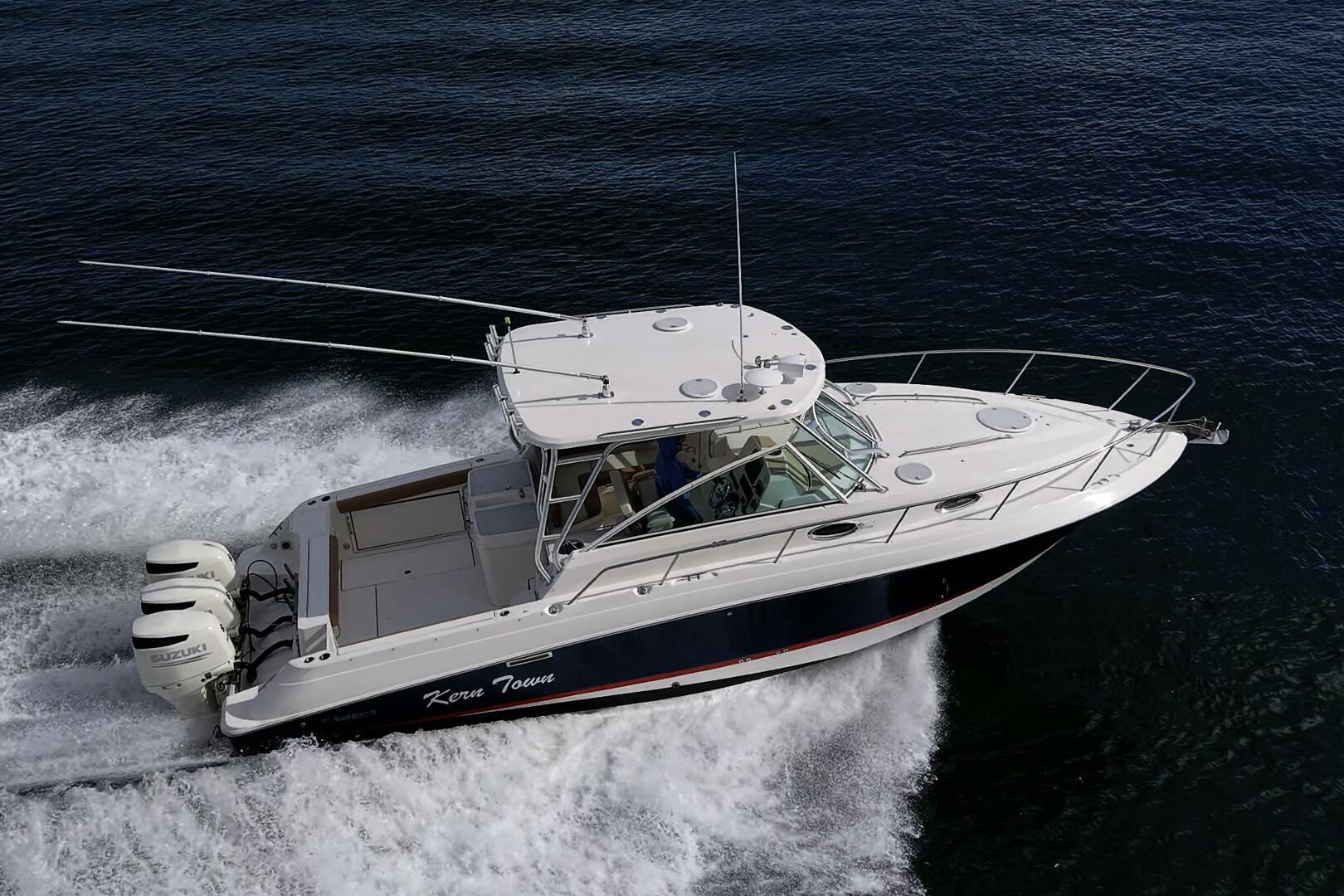 Introducing the Wellcraft 340 Coastal, a remarkable saltwater fishing vessel from 2013, measuring an impressive 34 feet in overall length. Equipped with triple 300 Suzuki outboard engines.