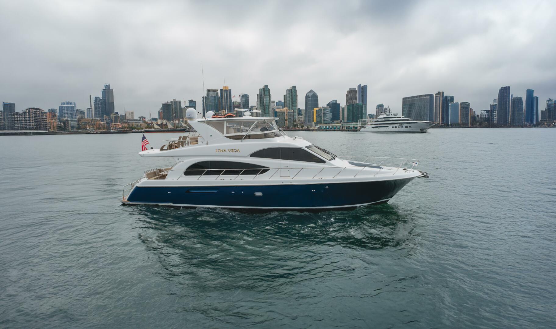 Accommodations include an impressive three cabin/three head layout hard to find in a 64' MY; this yacht provides ample space for relaxation and comfort. The thoughtful design ensures that every journey is enjoyable, whether you're entertaining guests or enjoying a peaceful retreat. UNA VIDA is a perfect blend of sophistication and performance, ready to create unforgettable memories on the open sea.
