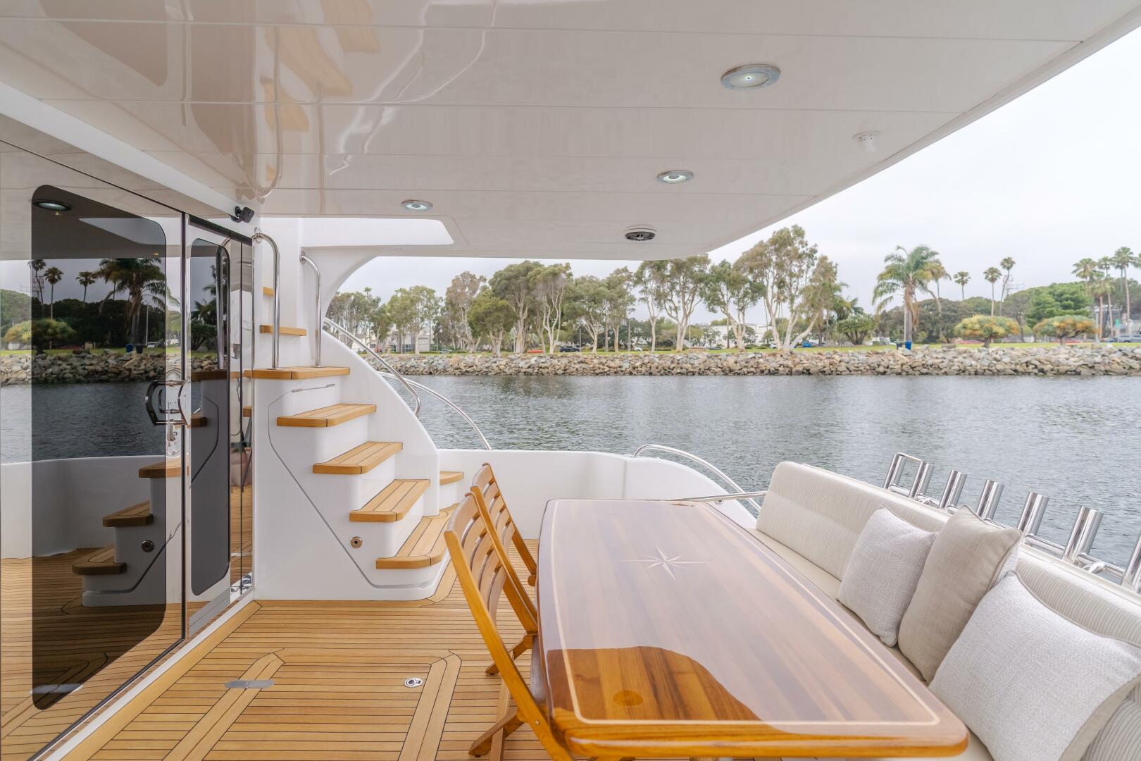 •(8) Step stairs with teak treads leading to Flybridge/boat deck