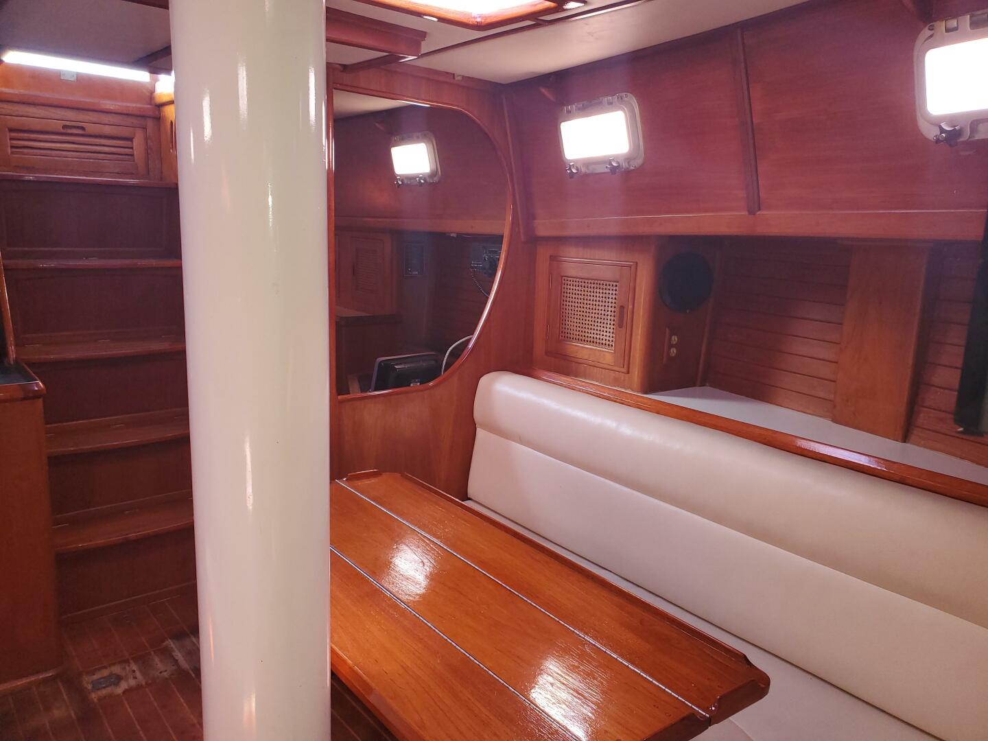 - Interior: The interior typically features a layout with a centerline king-sized berth in the aft owner's suite, a forward V-berth, and two heads. The use of solid teak and teak veneer throughout the interior gives it a classic finish.