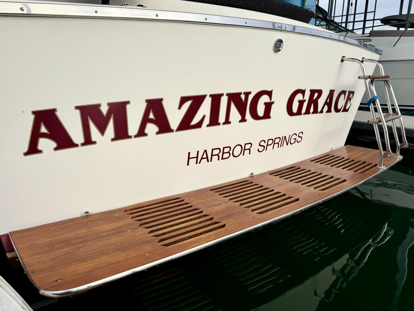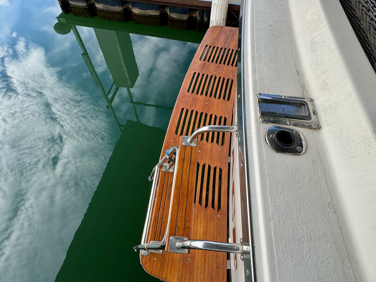 Teak Swim Platform w/2-Step Swim Boarding Ladder, (2)Rod Holders, 30Amp Power, Dockside Water Inlet,