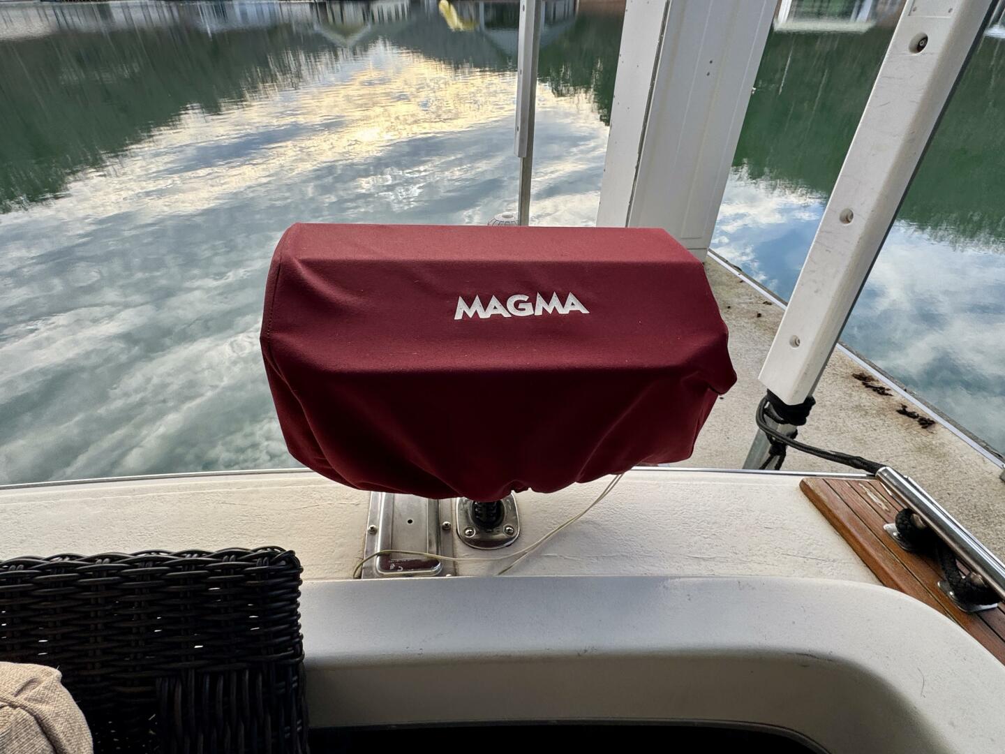 Double Stainless Sink, Rod-Holder Mounted Magma Gas Grill w/Cover at Transom,