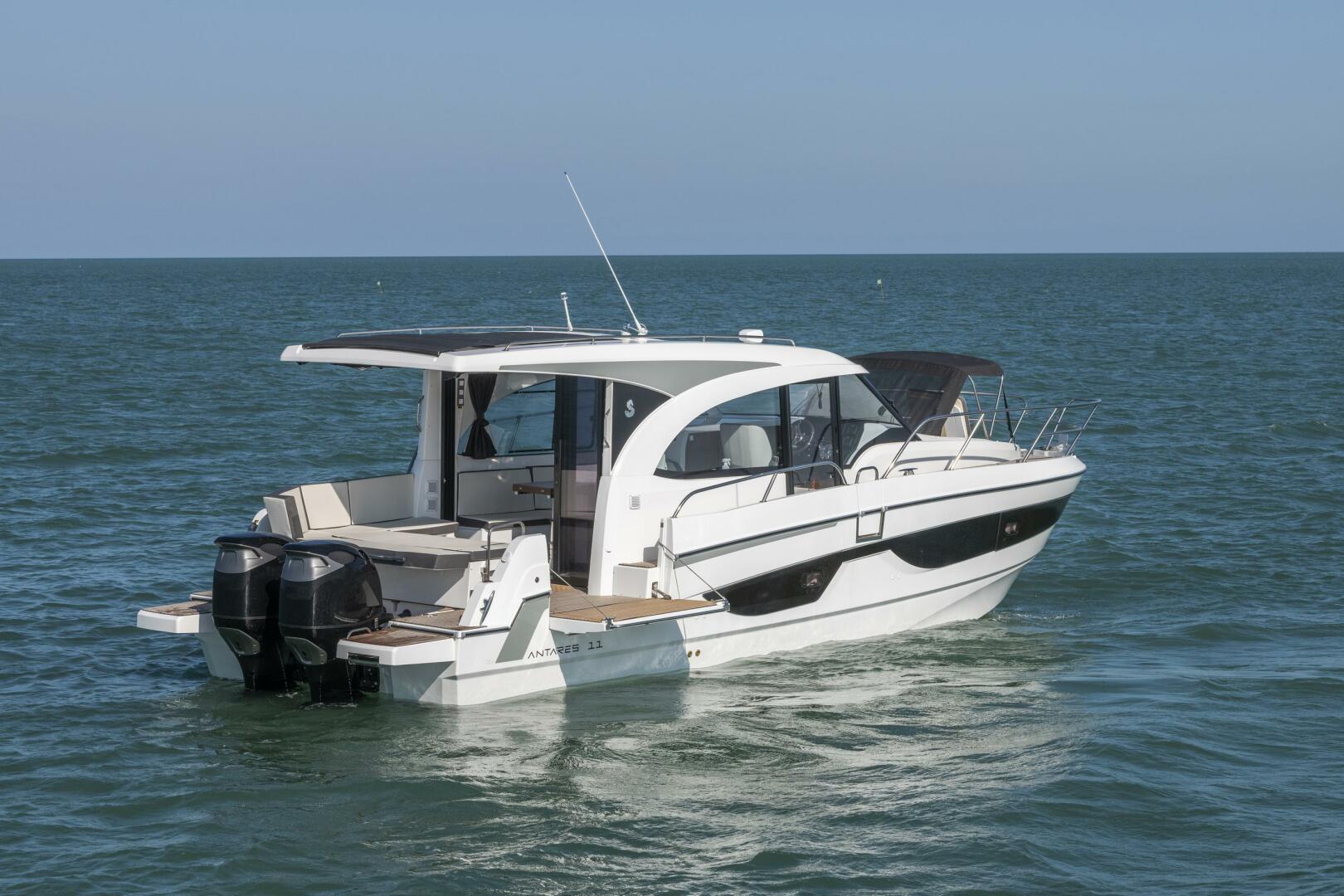 Created in collaboration between BENETEAU and Sarrazin Design, the Antares 11 sets the standard for what a pocket cruiser can be. Ample natural light, plenty of seating, a fold down swim platform and a forward sunpad are just a few of the boat's features.