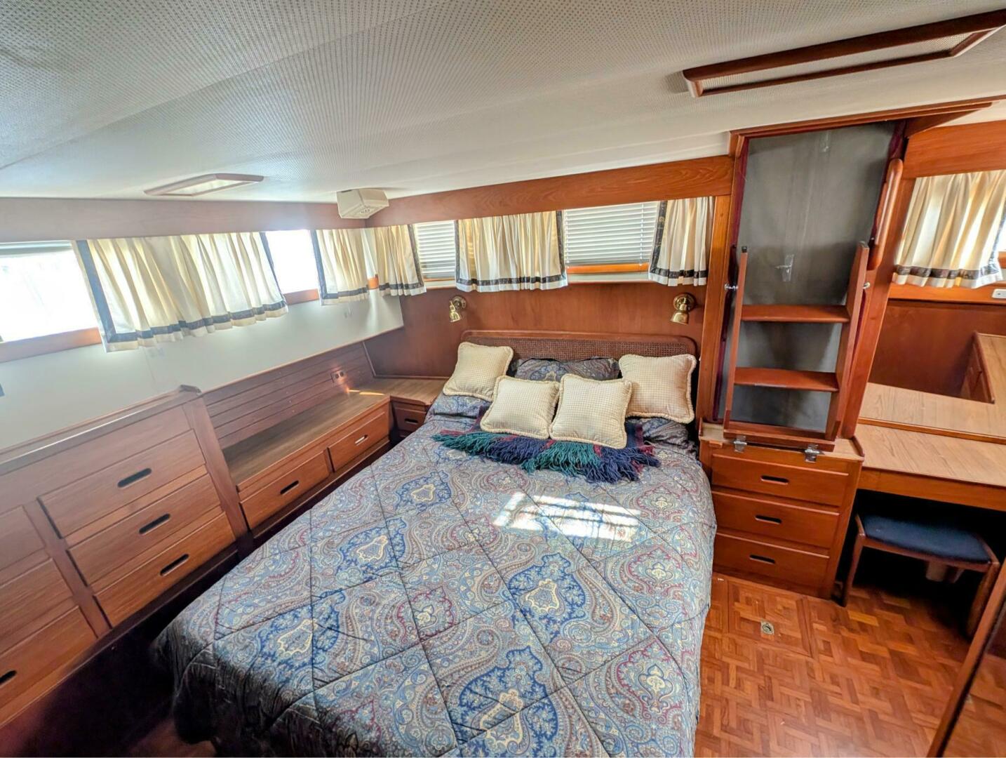 Up floorplan was standard. The large owner's aft cabin is designed with a