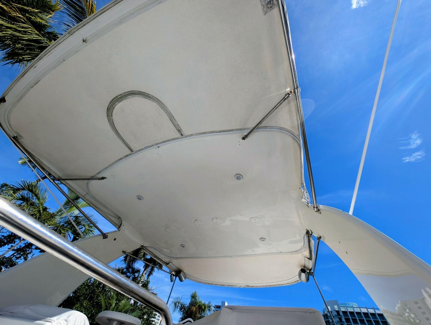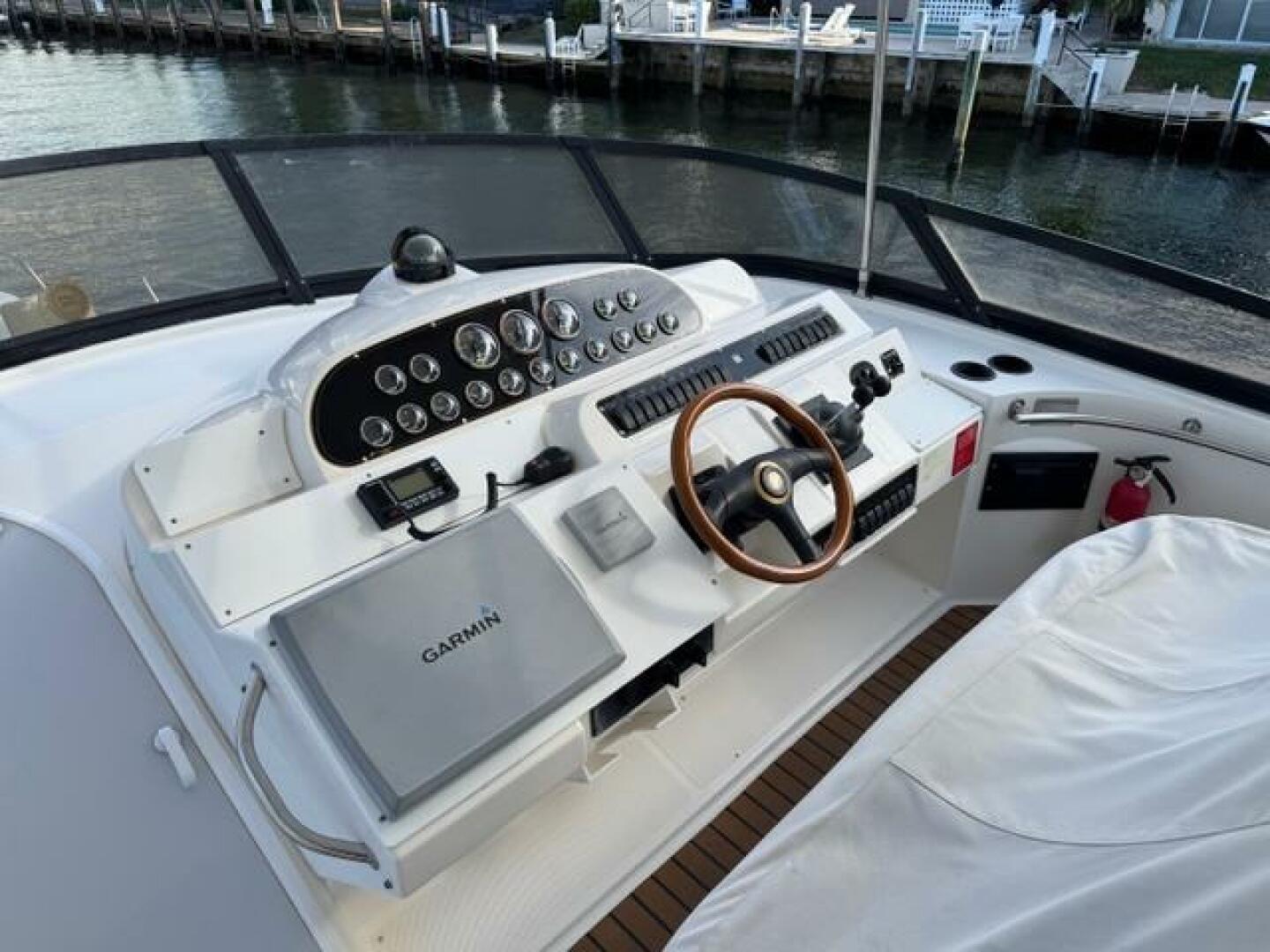 Your guests will love the spacious flybridge, offering 360-degree water views, plenty of seating, and a wet bar the perfect setting for sunset cocktails. The molded staircase from the cockpit and rare inside access to the flybridge make movement around the boat effortless.