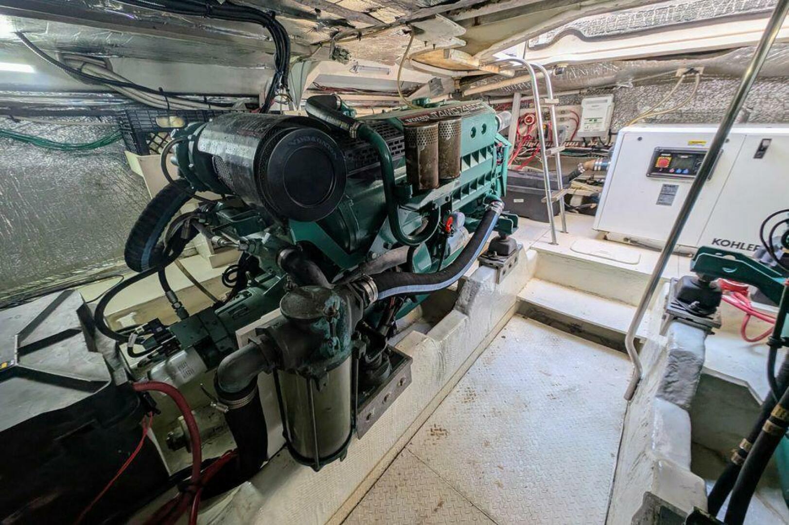 Equipped with fully rebuilt twin Volvo Penta TAMD 74 EDC diesel engines (2 x 480 HP), this yacht delivers a smooth yet powerful ride, The shallow keel and prop pockets enhance efficiency, while the hydraulic trim tabs and bow thruster ensures precise handling in any conditions.
