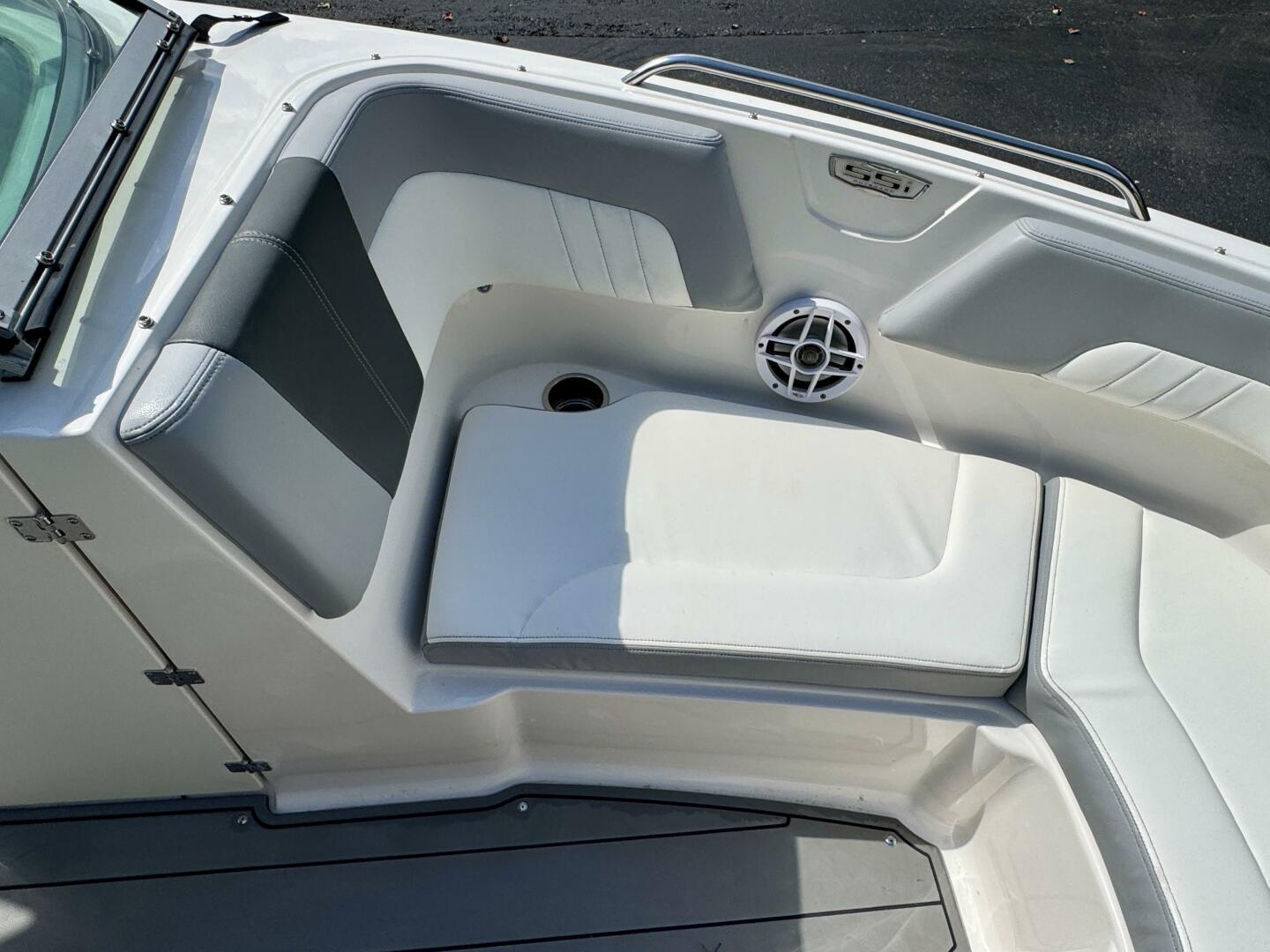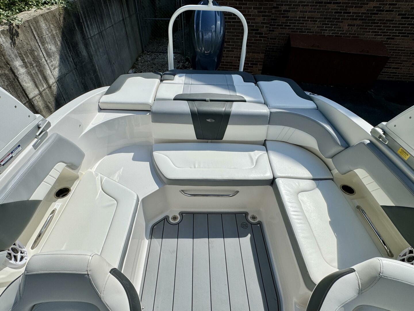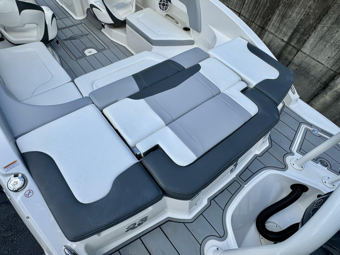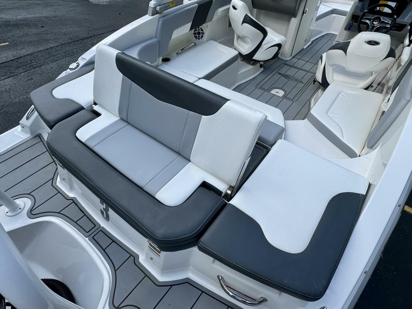 Integrated Swim Platform w/Sea-Dek Flooring, 4-Step Swim Boarding Ladder, Engine-Mount Trim Switch, Convertible SunLounge w/Flip-Up Reclined Seating (Port/Starboard Facing) and Pull-Up Rear Facing Seat Back,