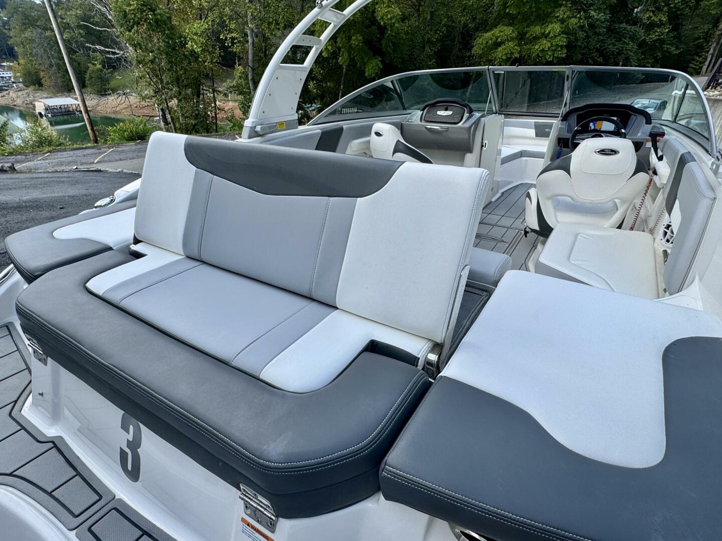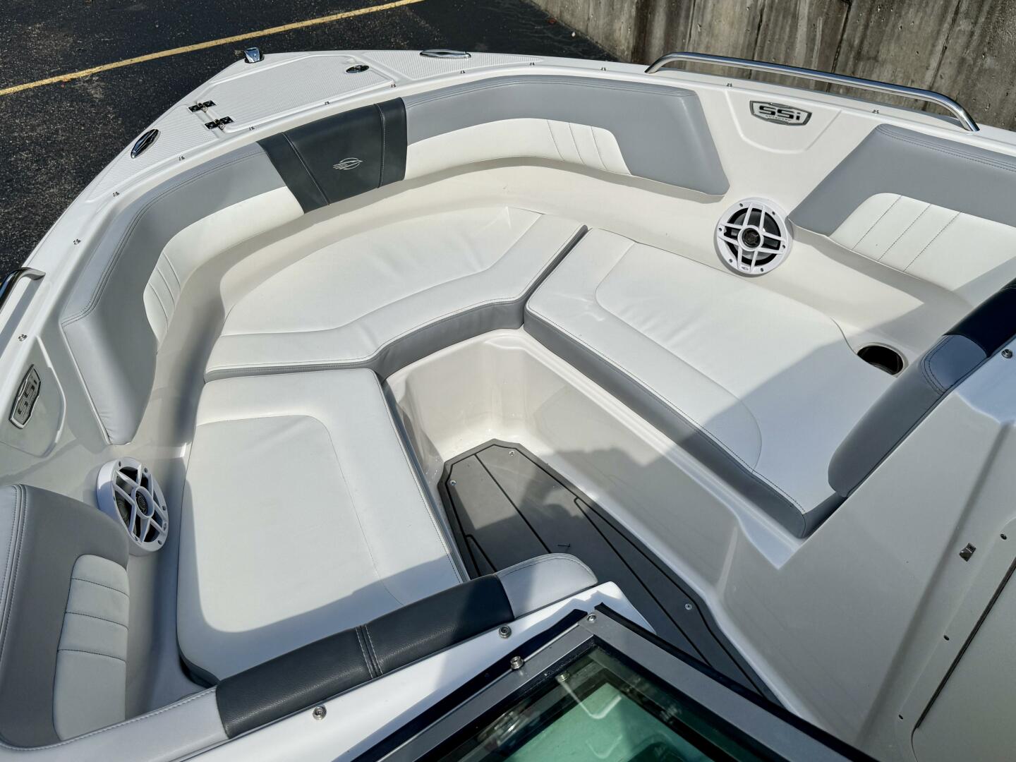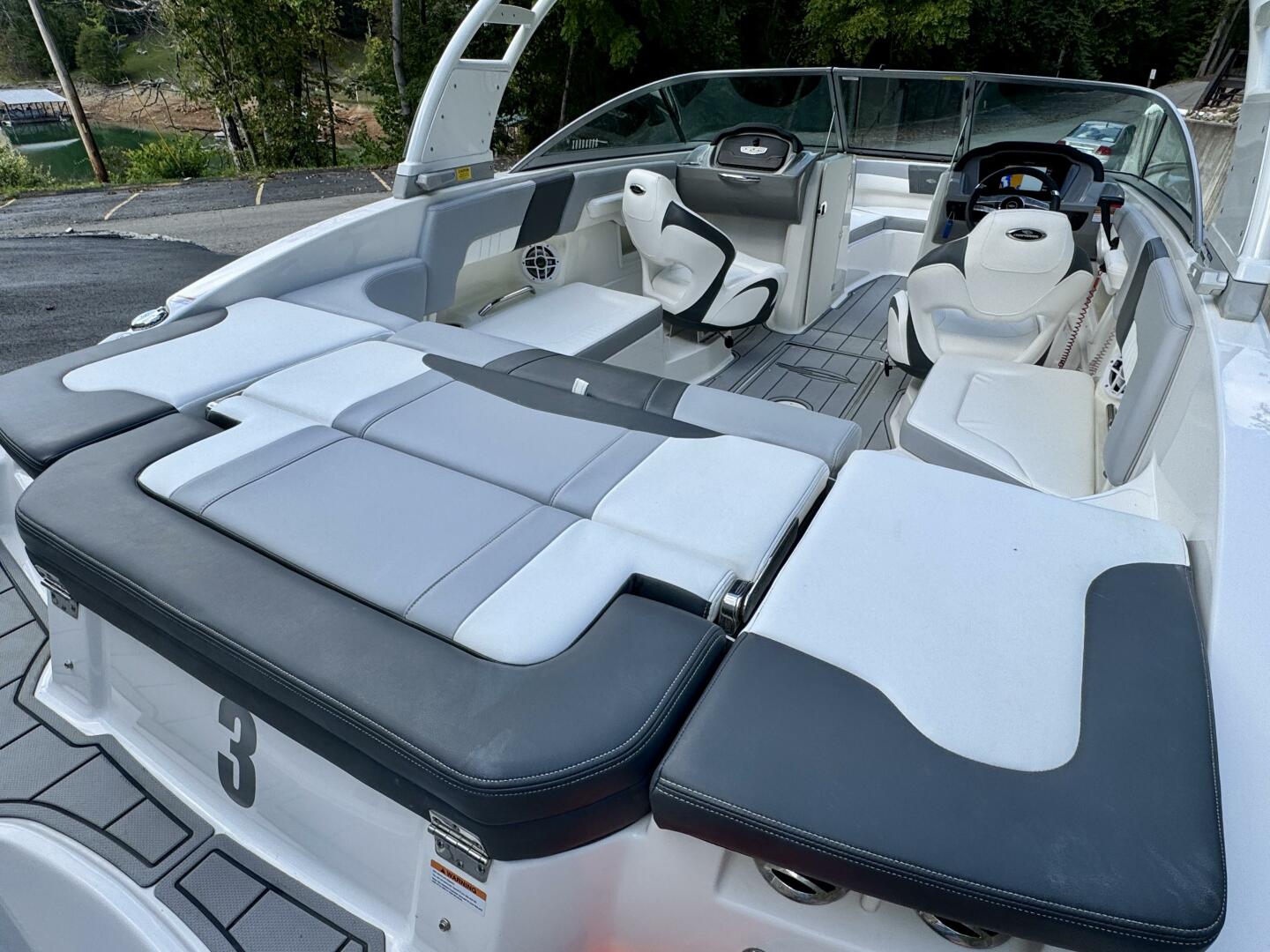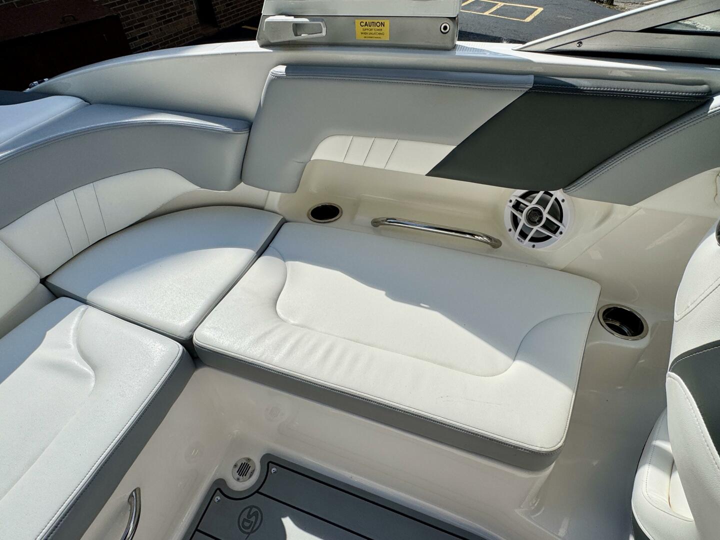 Integrated Swim Platform w/Sea-Dek Flooring, 4-Step Swim Boarding Ladder, Engine-Mount Trim Switch, Convertible SunLounge w/Flip-Up Reclined Seating (Port/Starboard Facing) and Pull-Up Rear Facing Seat Back,