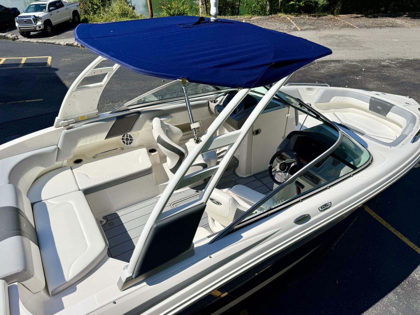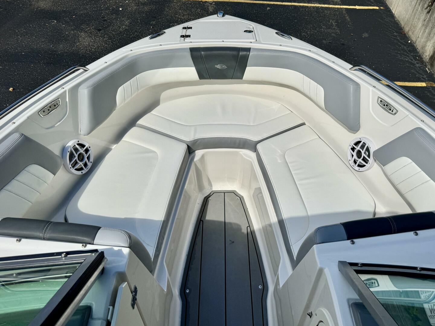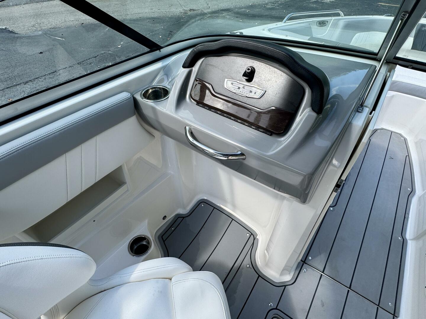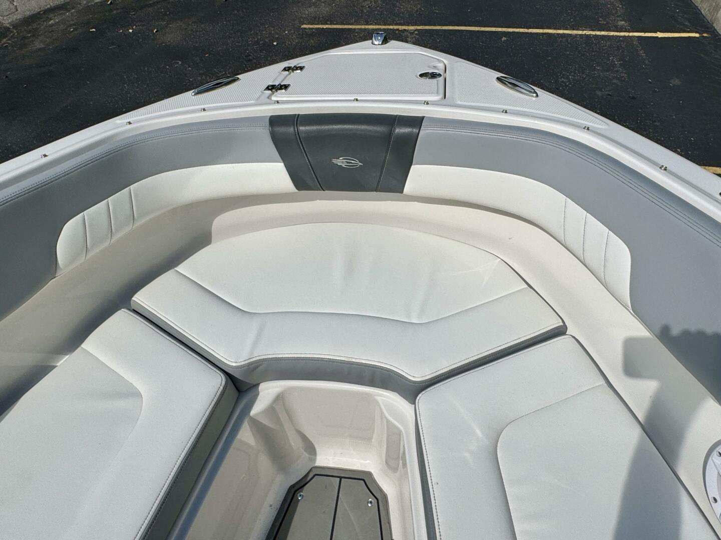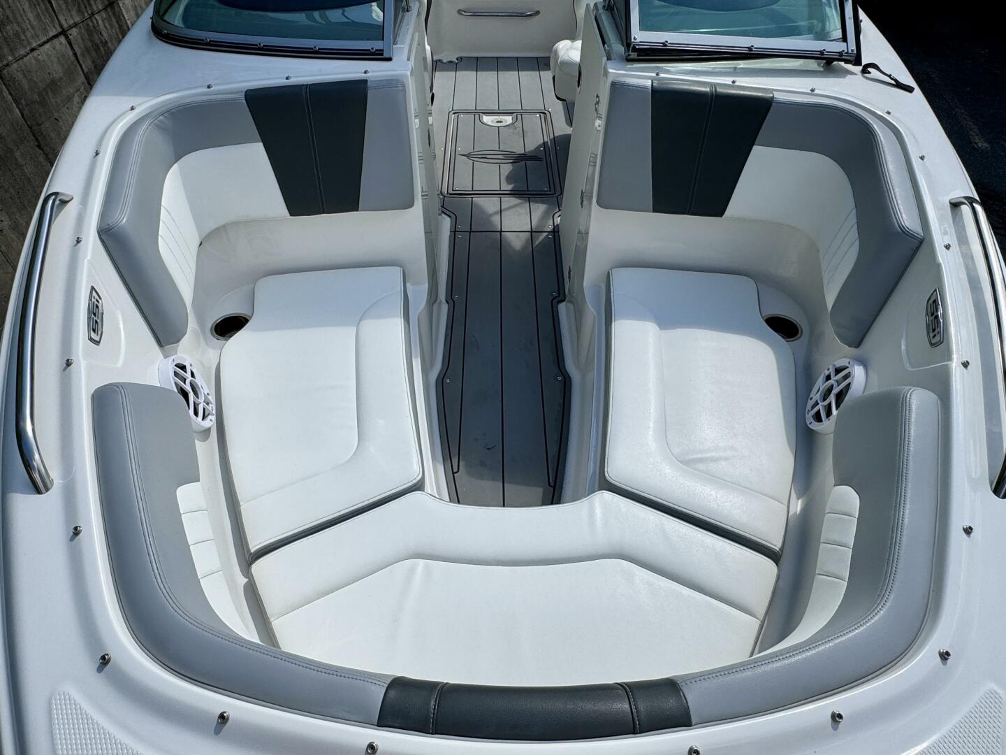 | Notable Upgrades: Flip-Up Transom Walk Thru, Bow Walk-Thru WindBlock, Snap-In Sea-Dek Cockpit Flooring, Convertible SunLounge w/Flip-Up Reclined Seating (Port/Starboard Facing) and Pull-Up Rear Facing Seat Back, Extended V-Plane Hull w/Biscayne Blue Hull Side Gel-Coat Color & Sterling Interior, & More! |