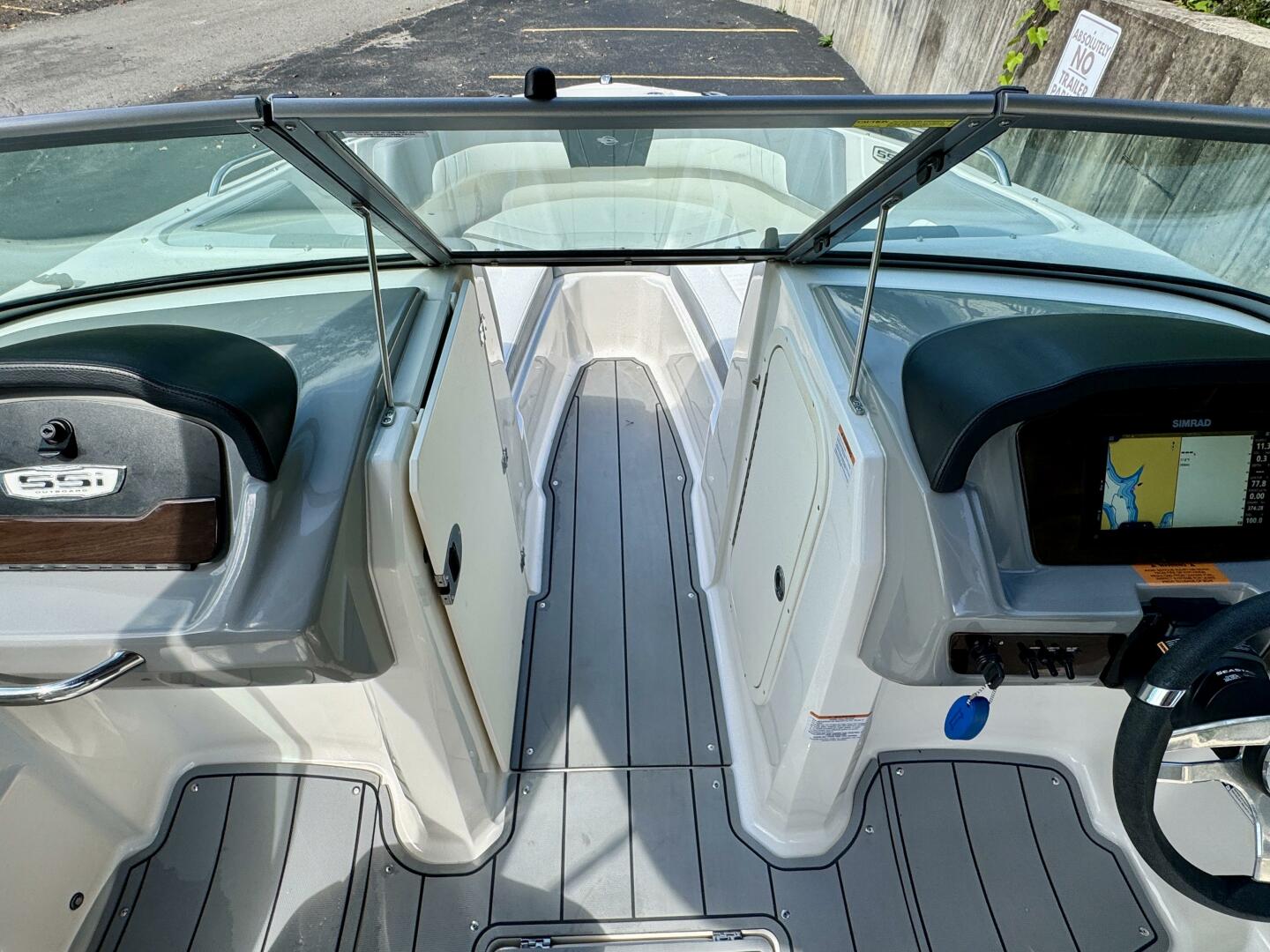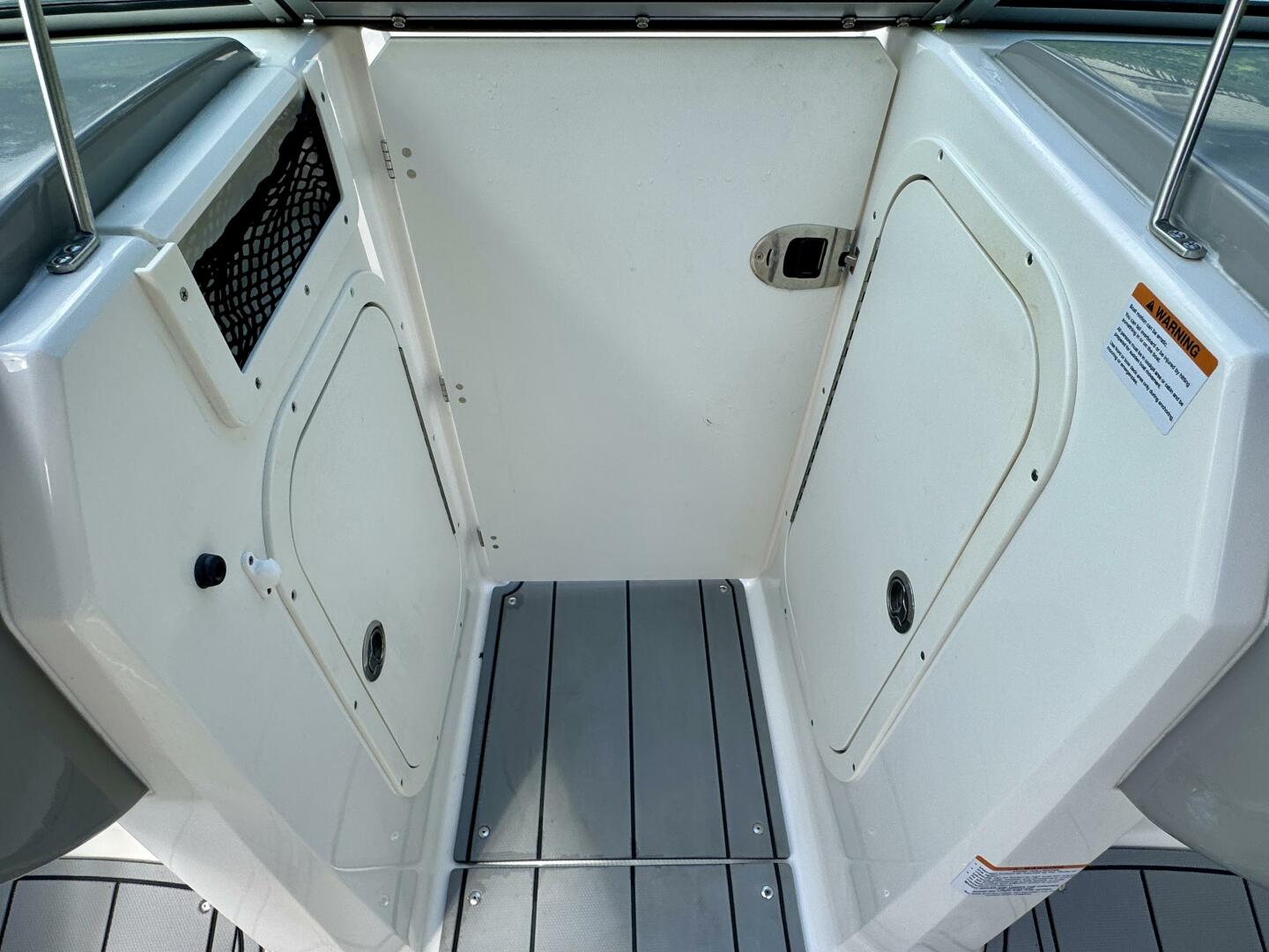 Flip-Up Transom Walk Thru, Bow Walk-Thru WindBlock, Snap-In Sea-Dek Cockpit Flooring,
