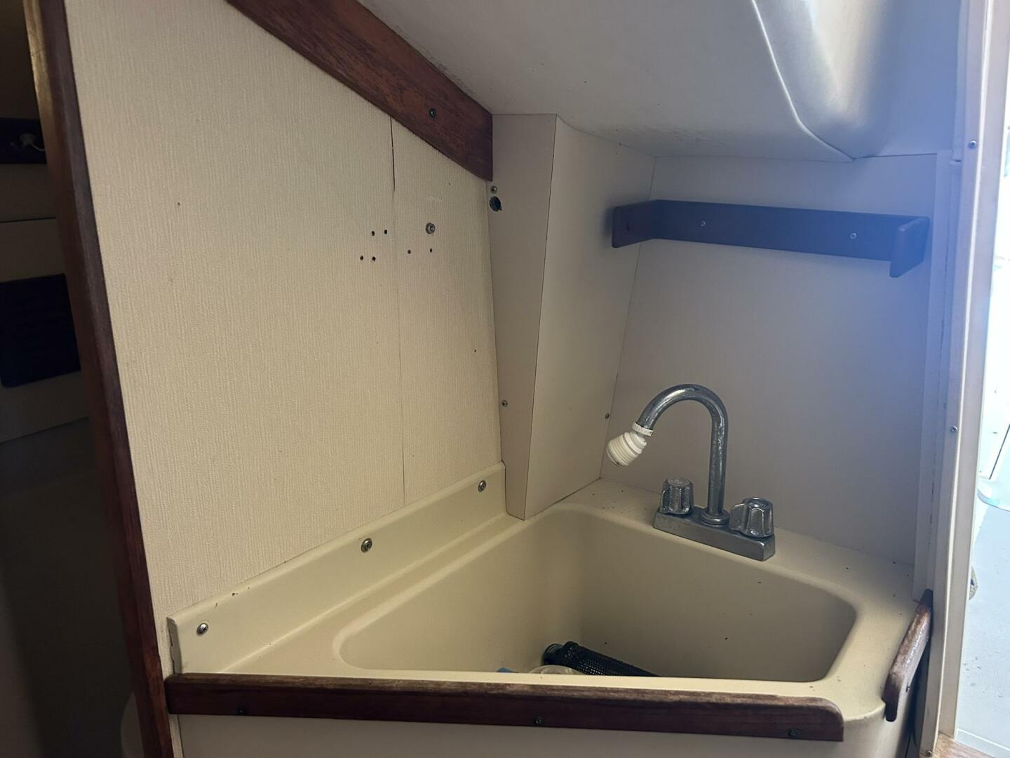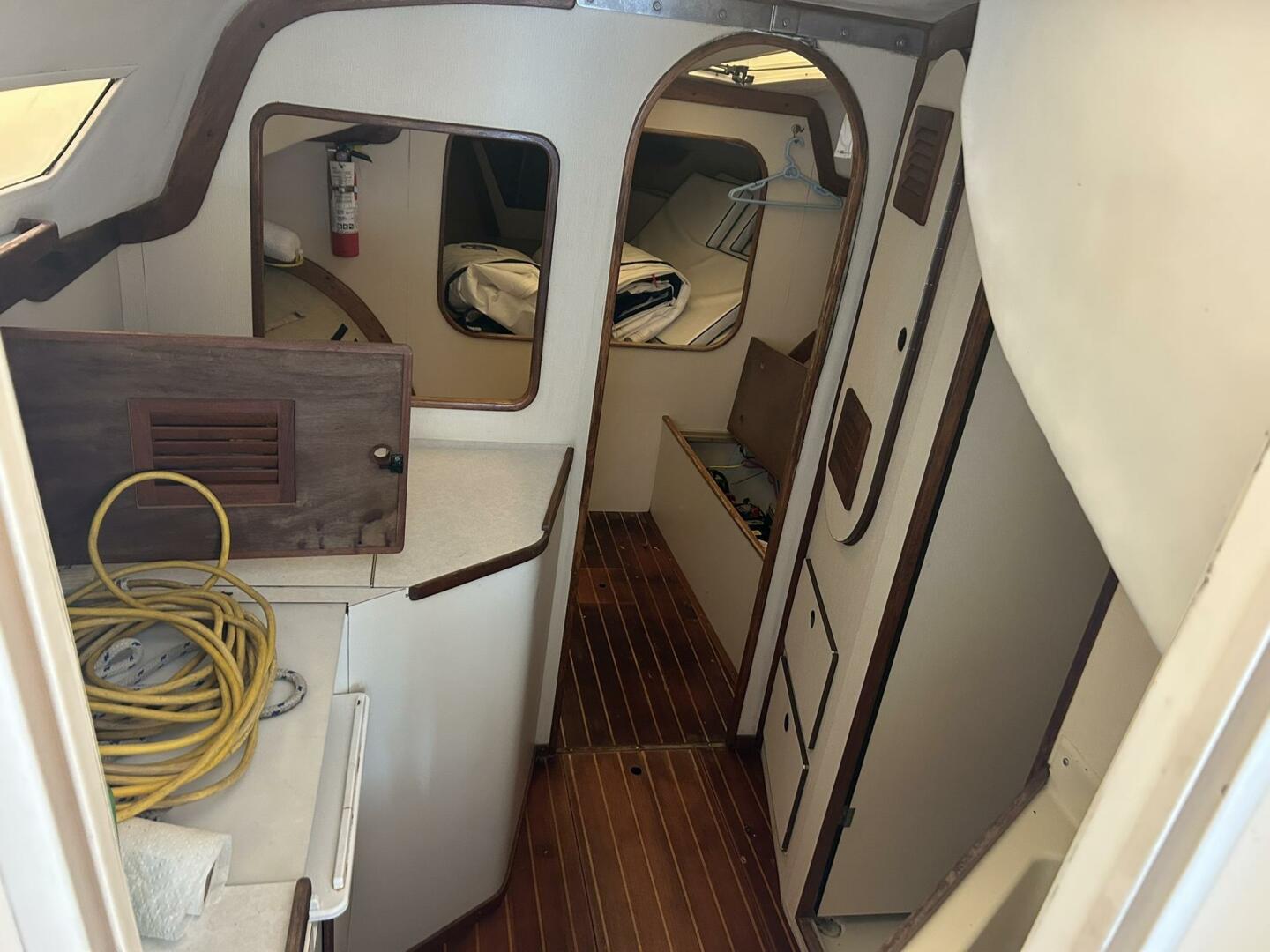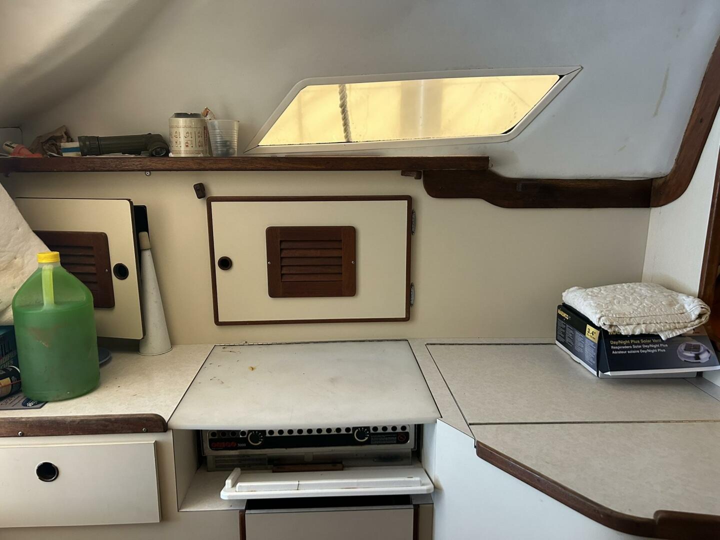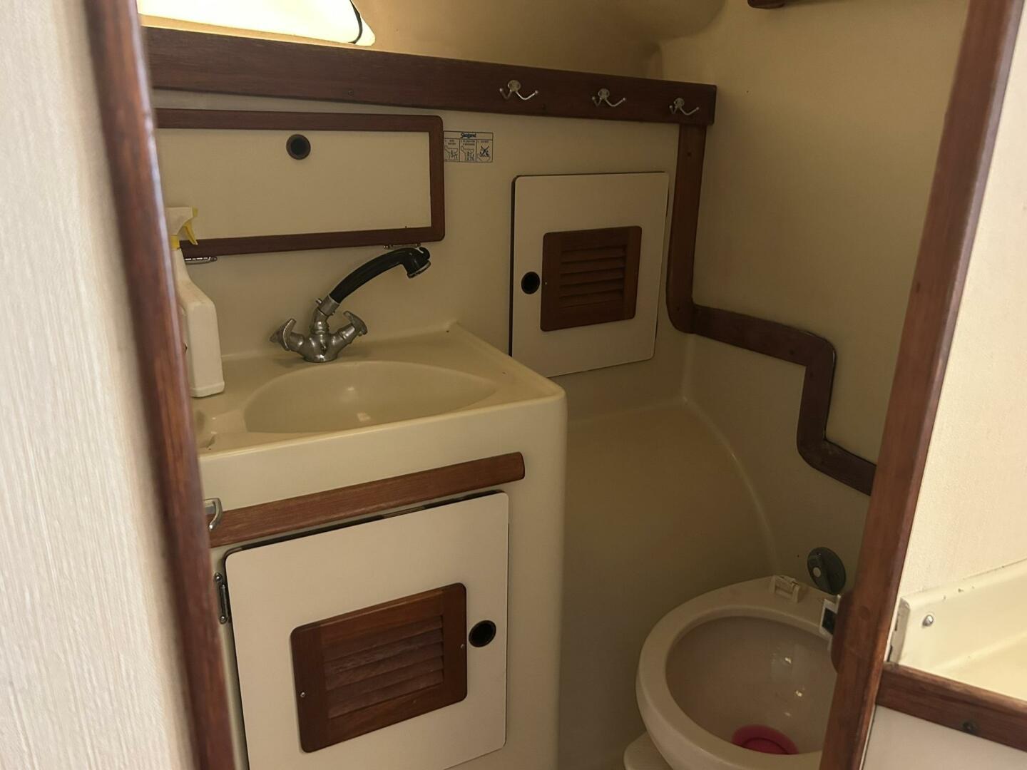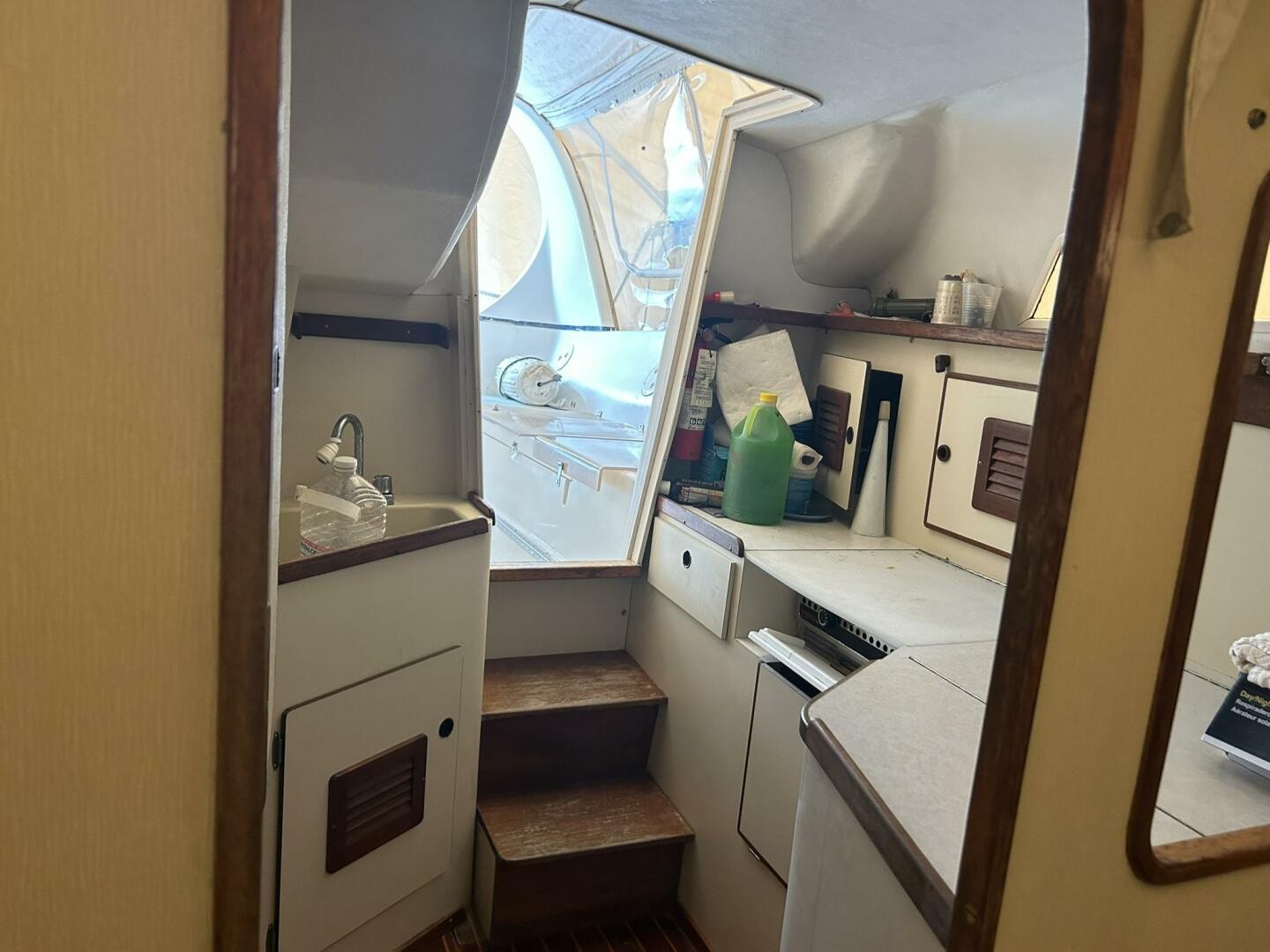 Below deck, the interior is practical and functional, with comfortable accommodations for cruising, good storage, and ventilation. The layout supports weekend use or extended coastal cruising while retaining a performance-focused feel.
