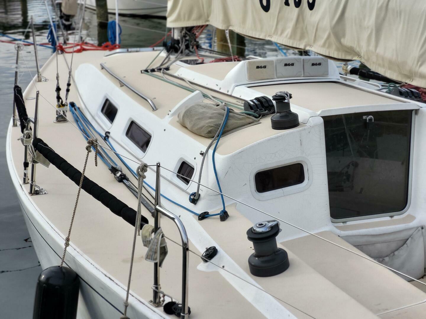 - Accommodations: Comfortable for weekend cruising with a forward V-berth, dual settees in the main salon, galley to port, and head to starboard. Ventilation through multiple hatches keeps the interior bright and airy.