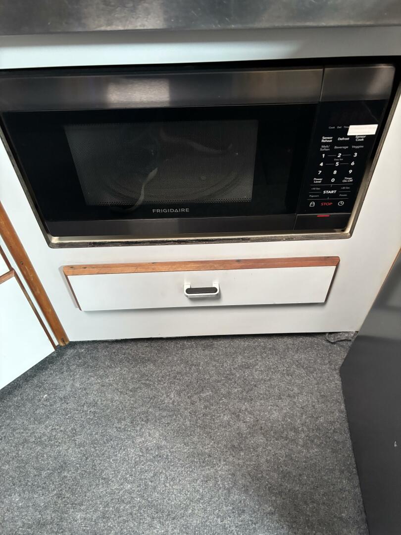 - Galley: Equipped with refrigerator, three-burner cooktop, sink, Microwave, Ice Maker, and ample storage